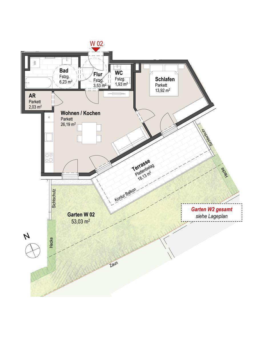 Kirchham W2 - 2-Zimmer Wohnung mit Terrasse und Privatgarten