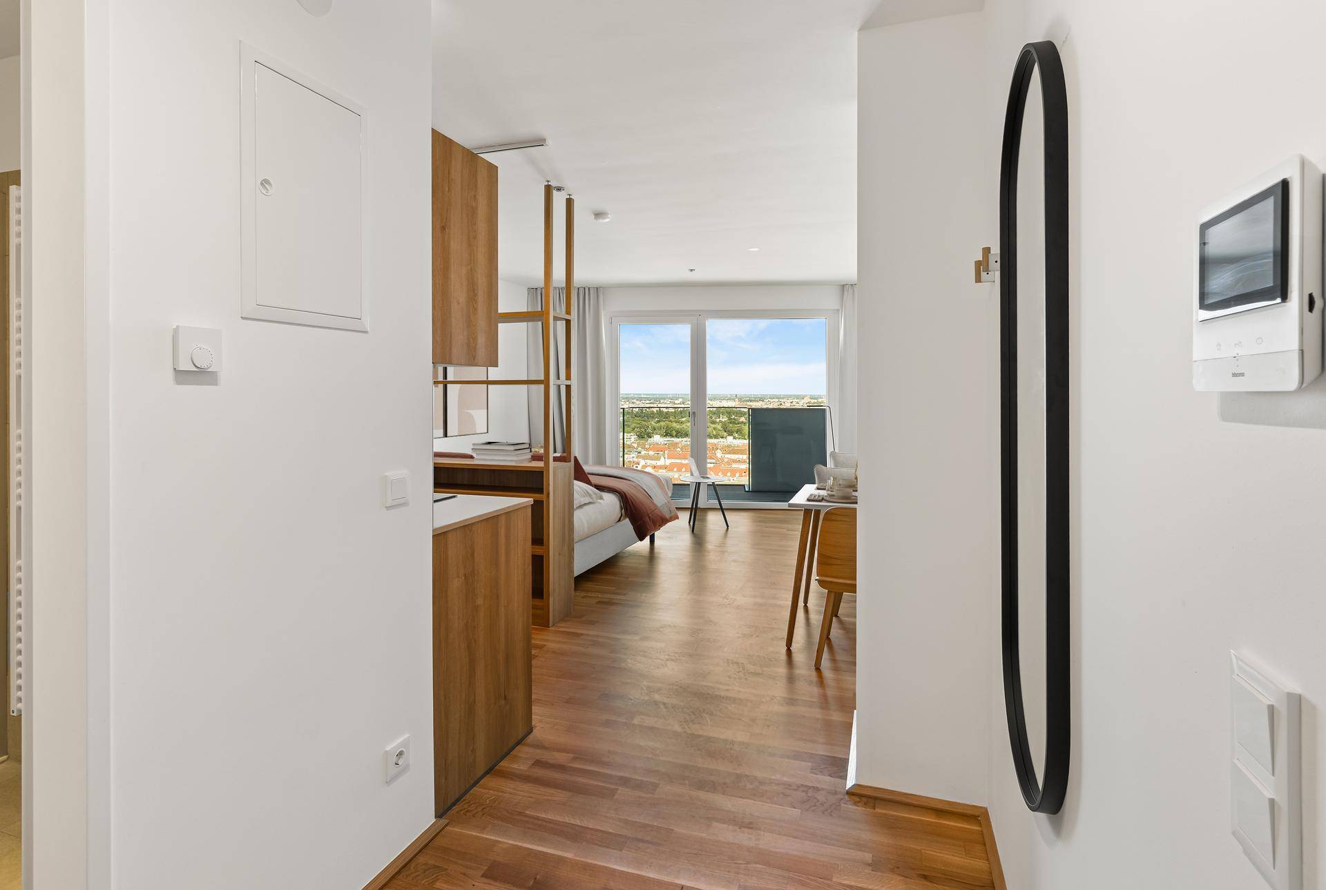 Studio Large (möbliert) mit Zugang zu Fitness, Co-Working, Dachterrasse, Kinoraum