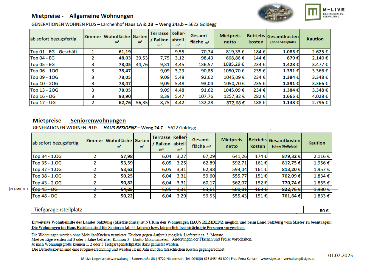 VOLLHOLZ Wohnungen - Generationen Wohnen Plus Lärchenhof in Goldegg-Weng