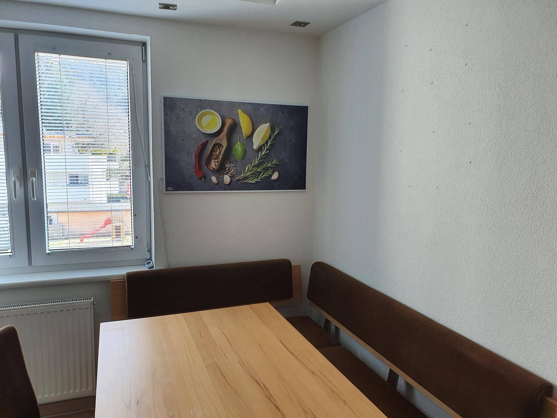 ETW mit ca. 78 m² Wohnfläche, Wohnzimmer mit Ofen, Küche mit Essplatz, 2 Schlafzimmer, Badezimmer mit Dusche und Wanne, Abstellraum, sep. Toilette, 2 Balkone, Garagenplatz, Kellerabteil