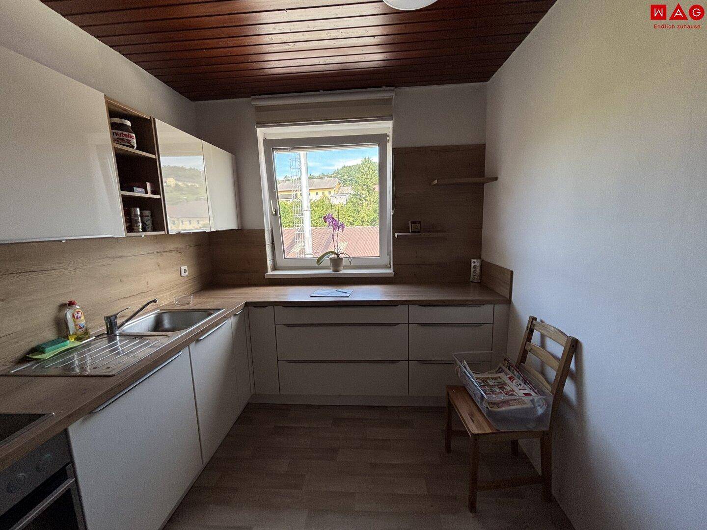 Charmante Balkonwohnung in ruhiger Umgebung im grünen Herzen von Untergrünburg: helle Raumaufteilung, praktischer Abstellraum und privater Parkplatz vor der Haustüre! Hochwertige Küchenablöse möglich!