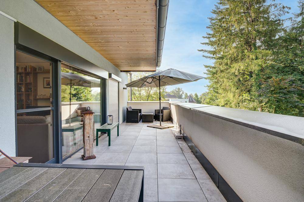Wohnen am Bach: Neuwertige Penthouse-Wohnung mit 2 großen Dachterrassen.
