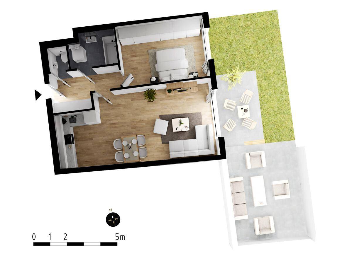 2-Zimmer Gartenwohnung | Markenküche | Fußbodenheizung | elektr. Außenbeschattung | Erdwärme