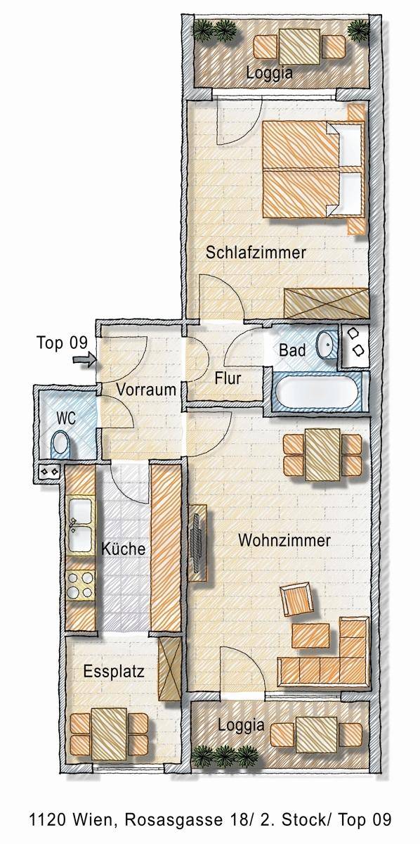 2 Zimmer mit 2 Loggien plus Einbauküche um € 1.119,00 inkl. BK,Mwst,WW PLUS Heizungspauschale