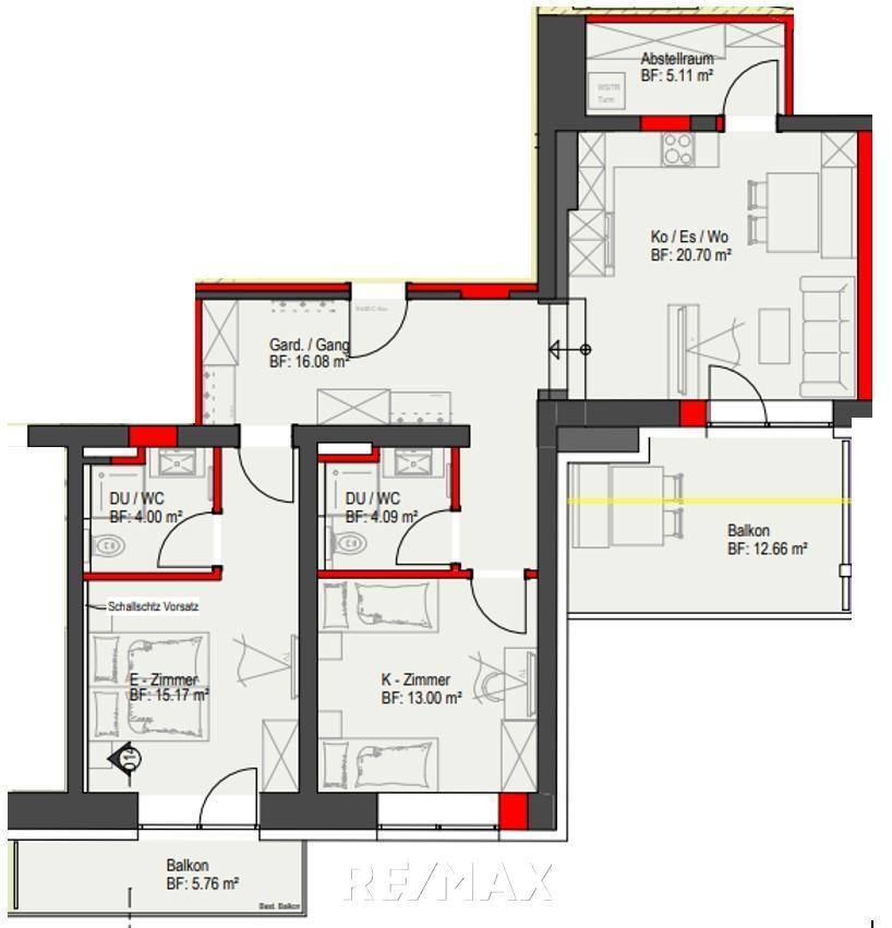 Lichtdurchflutete 3-Zimmer Wohnung mit zwei Balkone - Top 13