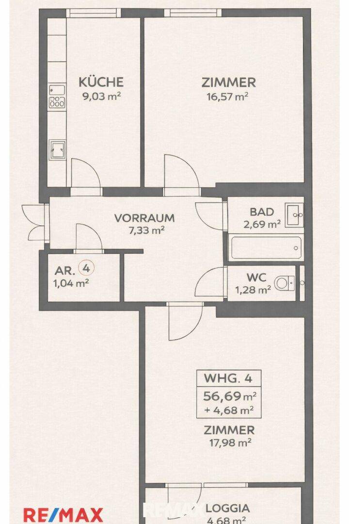 Renovierte großzügige 2 Zimmer Loggia Wohnung mit KFZ Abstellplatz inkl.