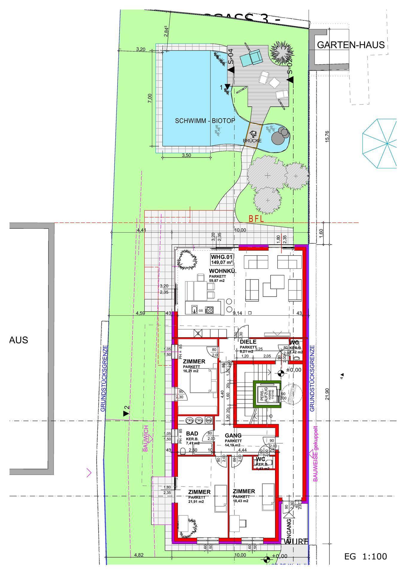Gartenwohnung mit Pool und Carport
