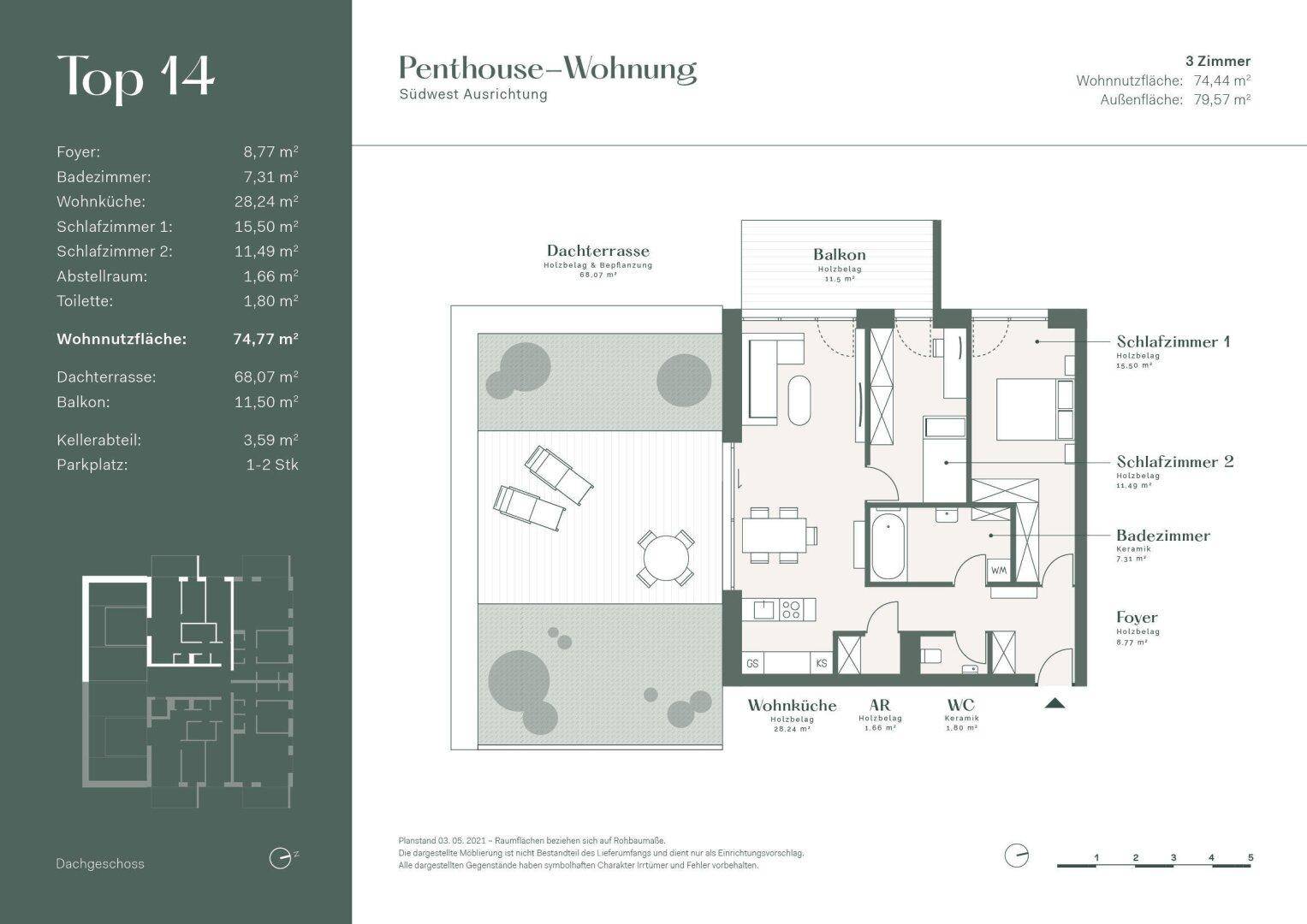 Exklusive Penthouse-Wohnung mit Dachterrasse und Balkon - Top14