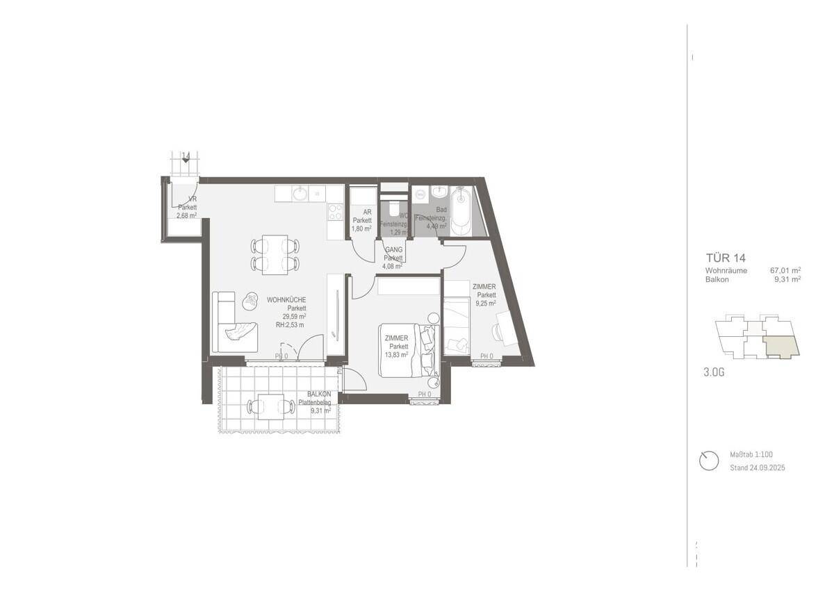 Wohnkomfort pur – 3-Zimmer-Erstbezugswohnung mit Freifläche
