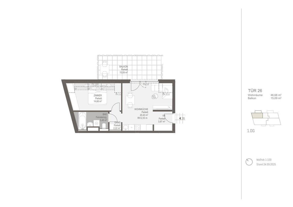 Sonnige 2-Zimmer-Dachgeschosswohnung mit Außenbereich im ERSTBEZUG