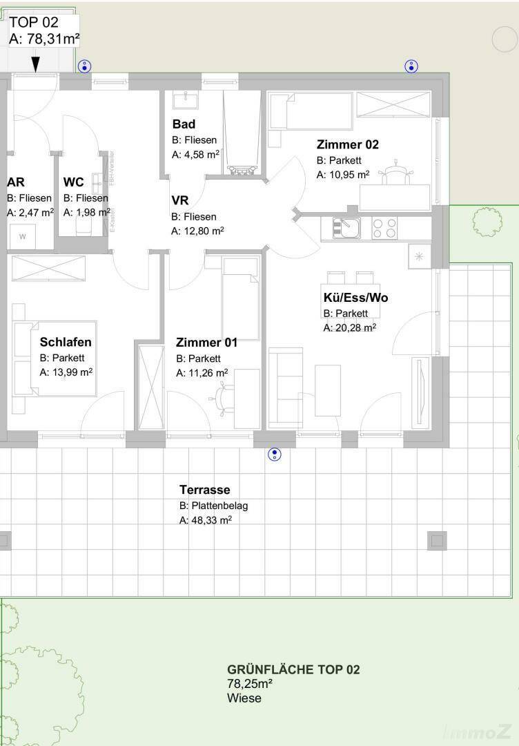 Provisionsfreie Gartenwohnung, 4 Zimmer, 48m² Terrasse, Klimatisierung und Raumbelüftung, Luftwärmepumpe, E-Parkplätze, Ruhelage in Graz