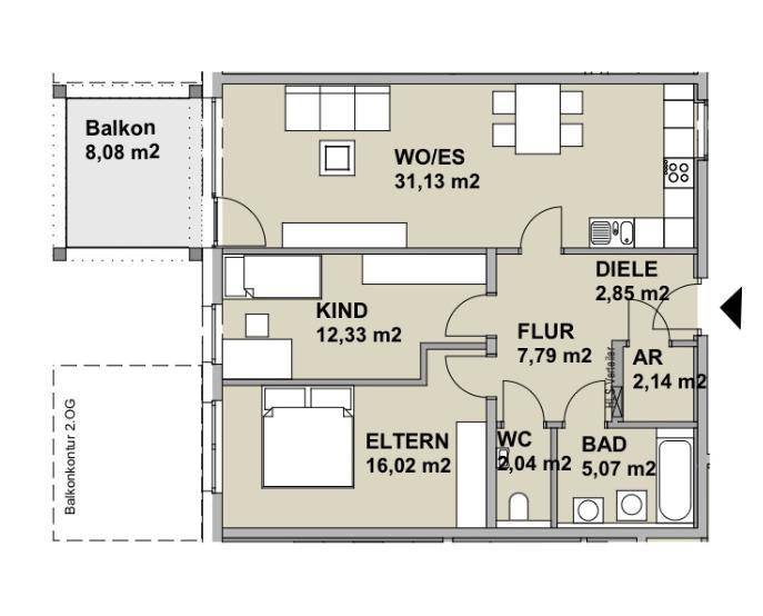 Moderne 3-Zimmer Wohnung mit Balkon und Tiefgarage