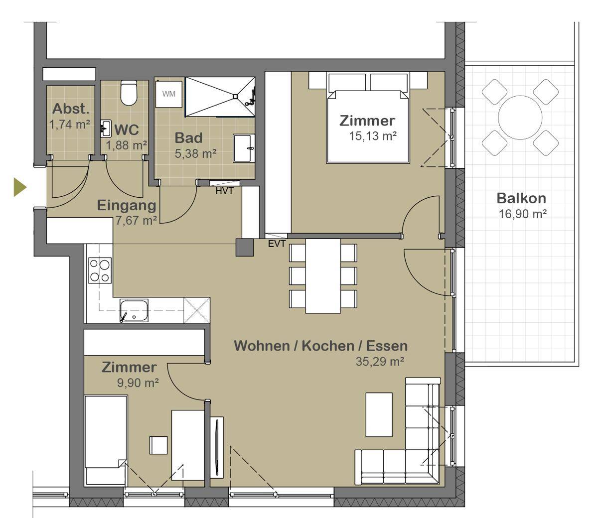 3-Zimmer-Neubauwohnung mit 16 m² Balkon