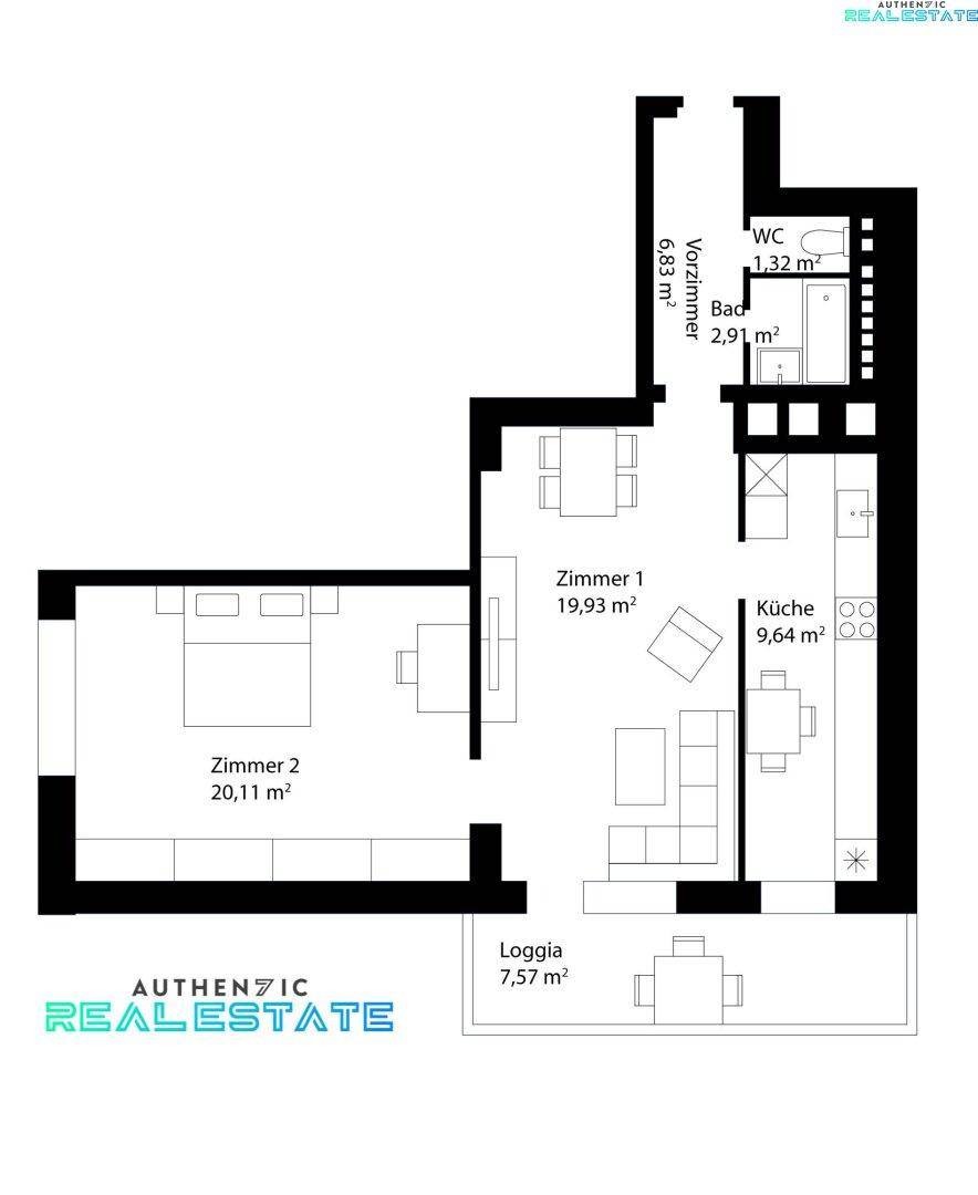 Teilsanierte 2-Zimmer-Neubauwohnung mit Loggia in Toplage
