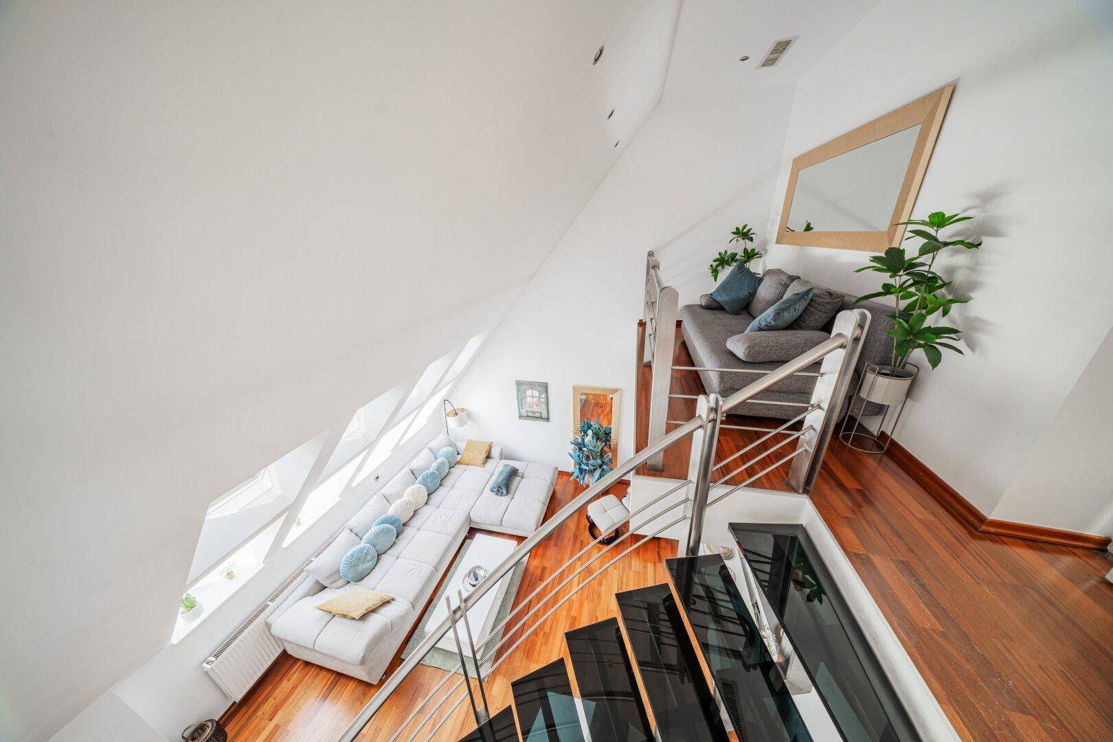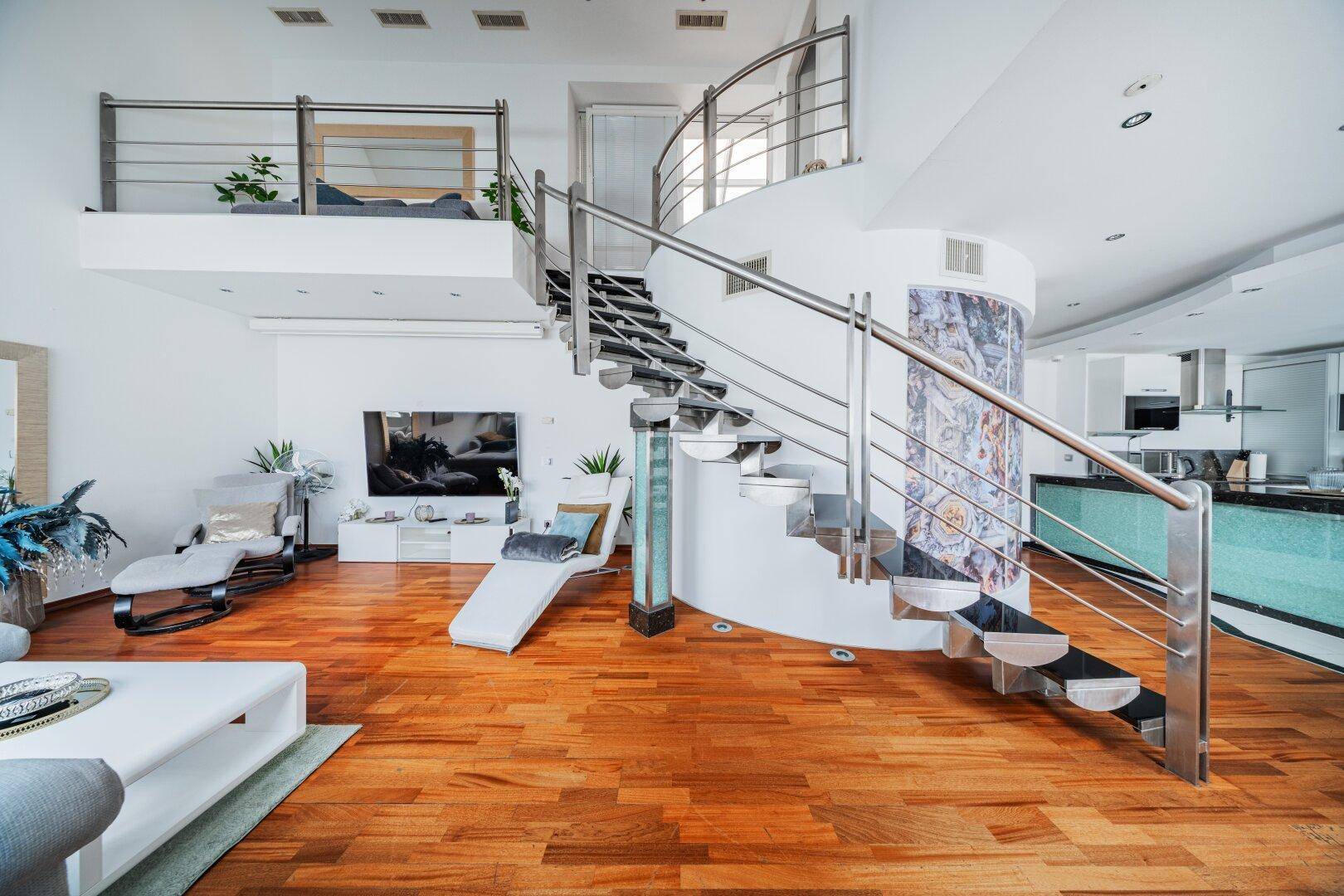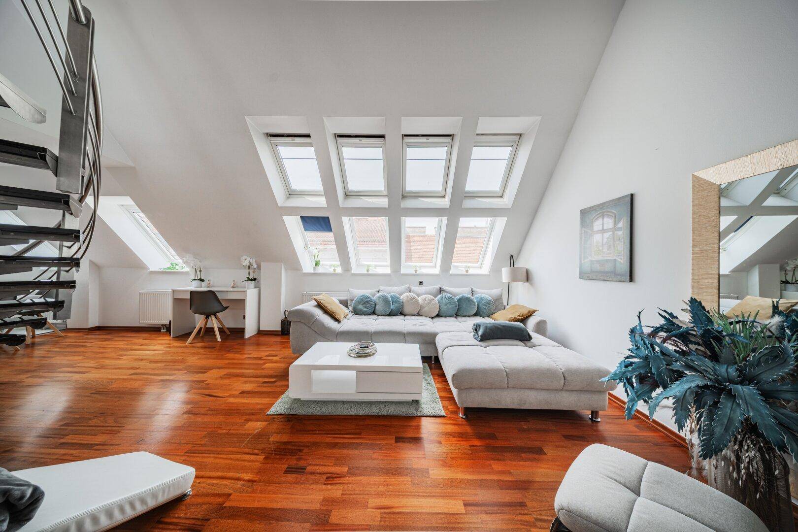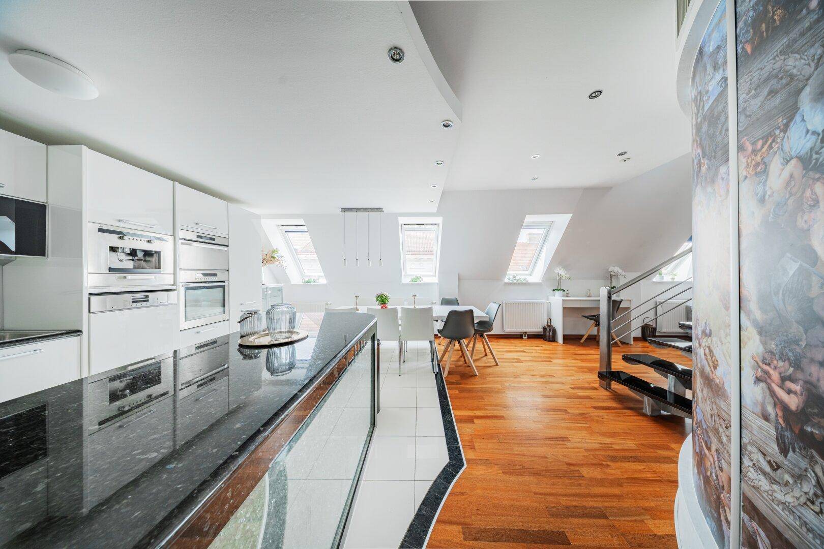 LUXURIÖSES WOHNEN ÜBER DEN DÄCHERN WIENS – MODERNE DG-WOHNUNG AUF 2 EBENEN MIT WHIRLPOOL + SAUNA + STELLPLATZ