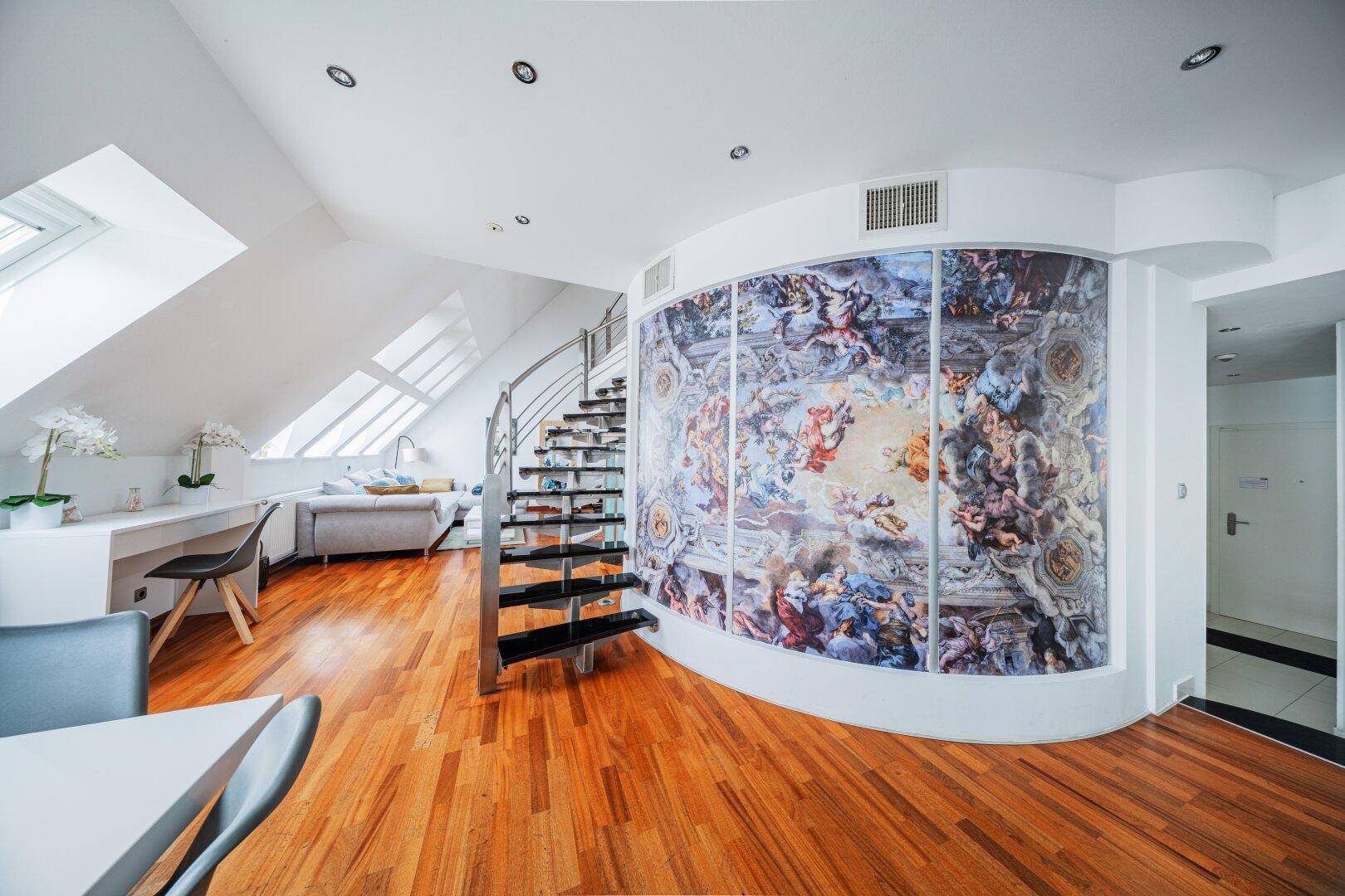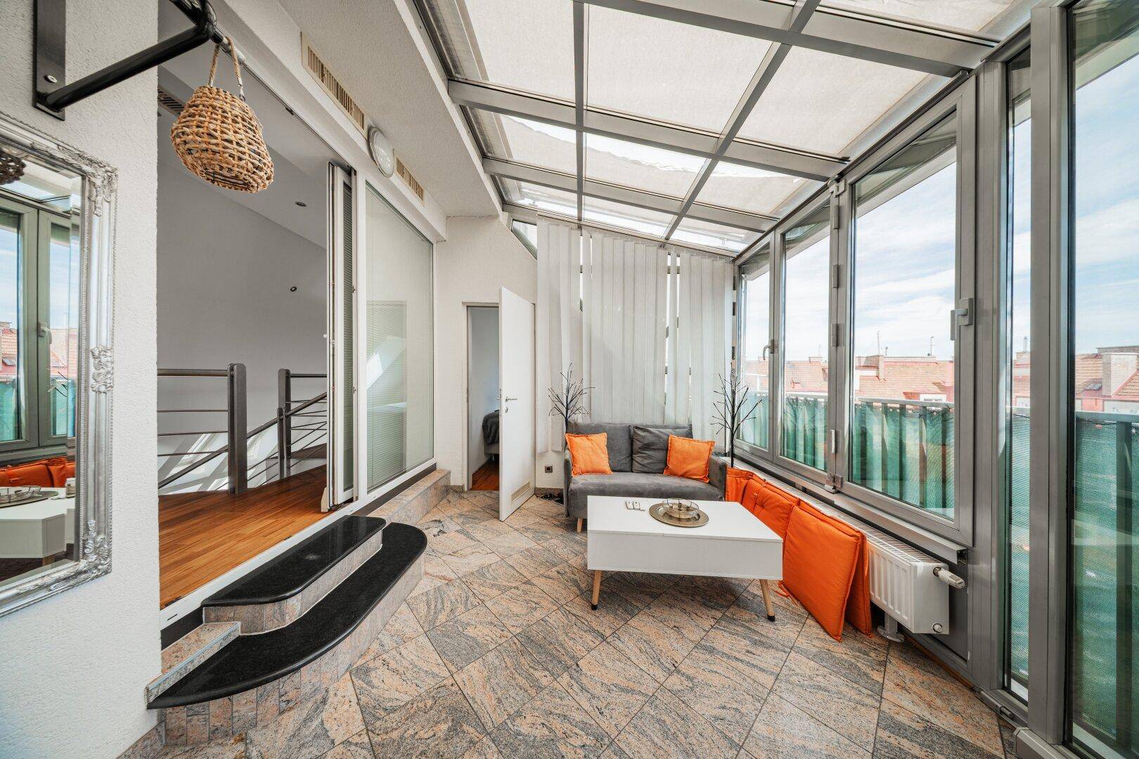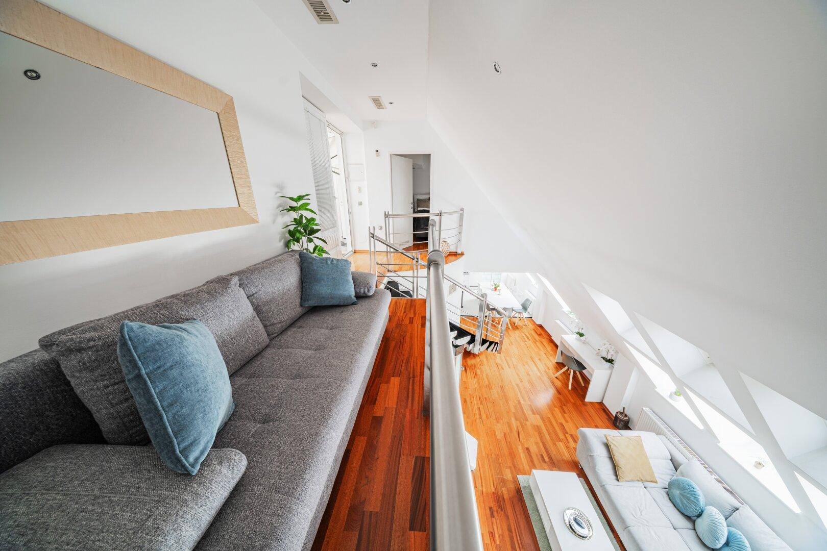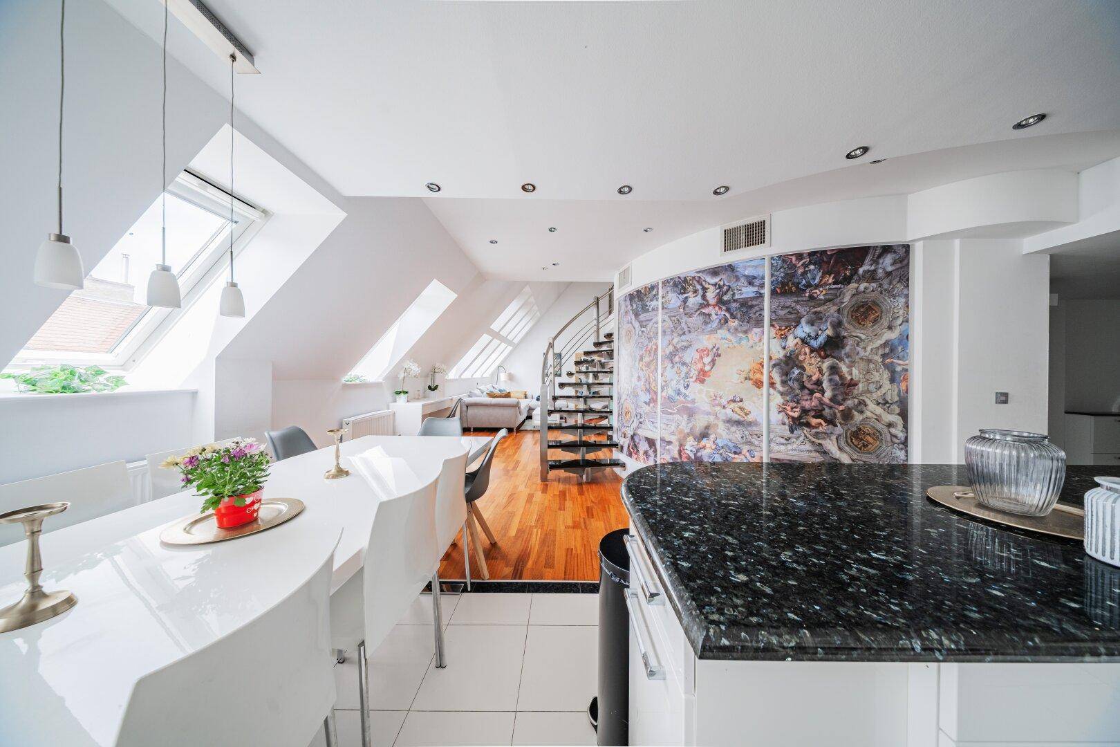 LUXURIÖSES WOHNEN ÜBER DEN DÄCHERN WIENS – MODERNE DG-WOHNUNG AUF 2 EBENEN MIT WHIRLPOOL + SAUNA + STELLPLATZ