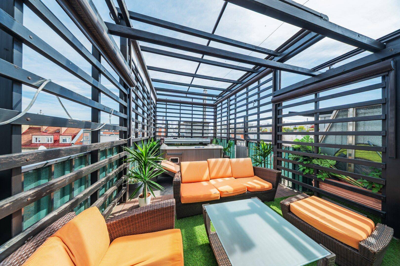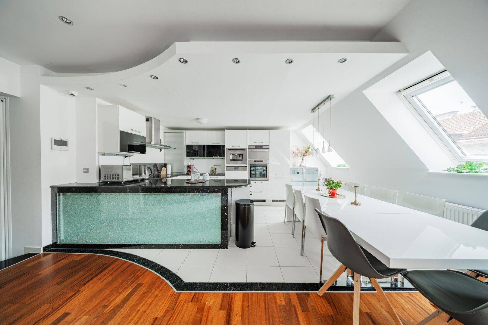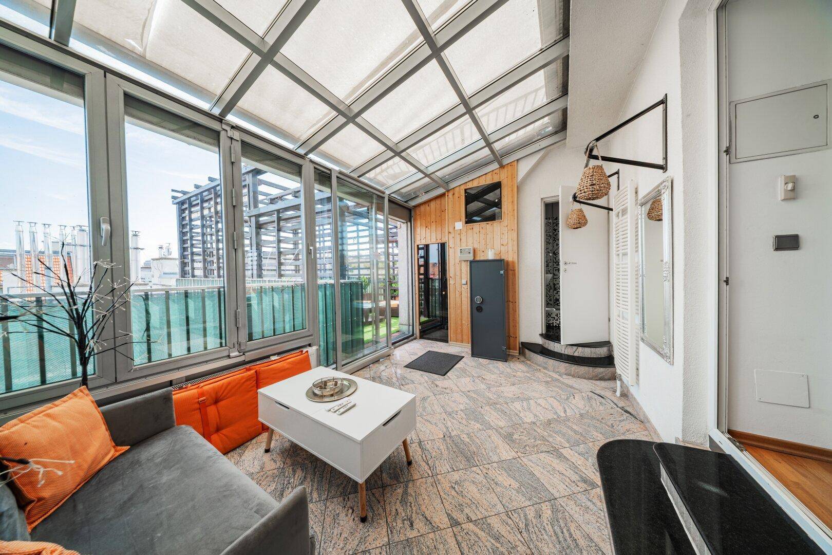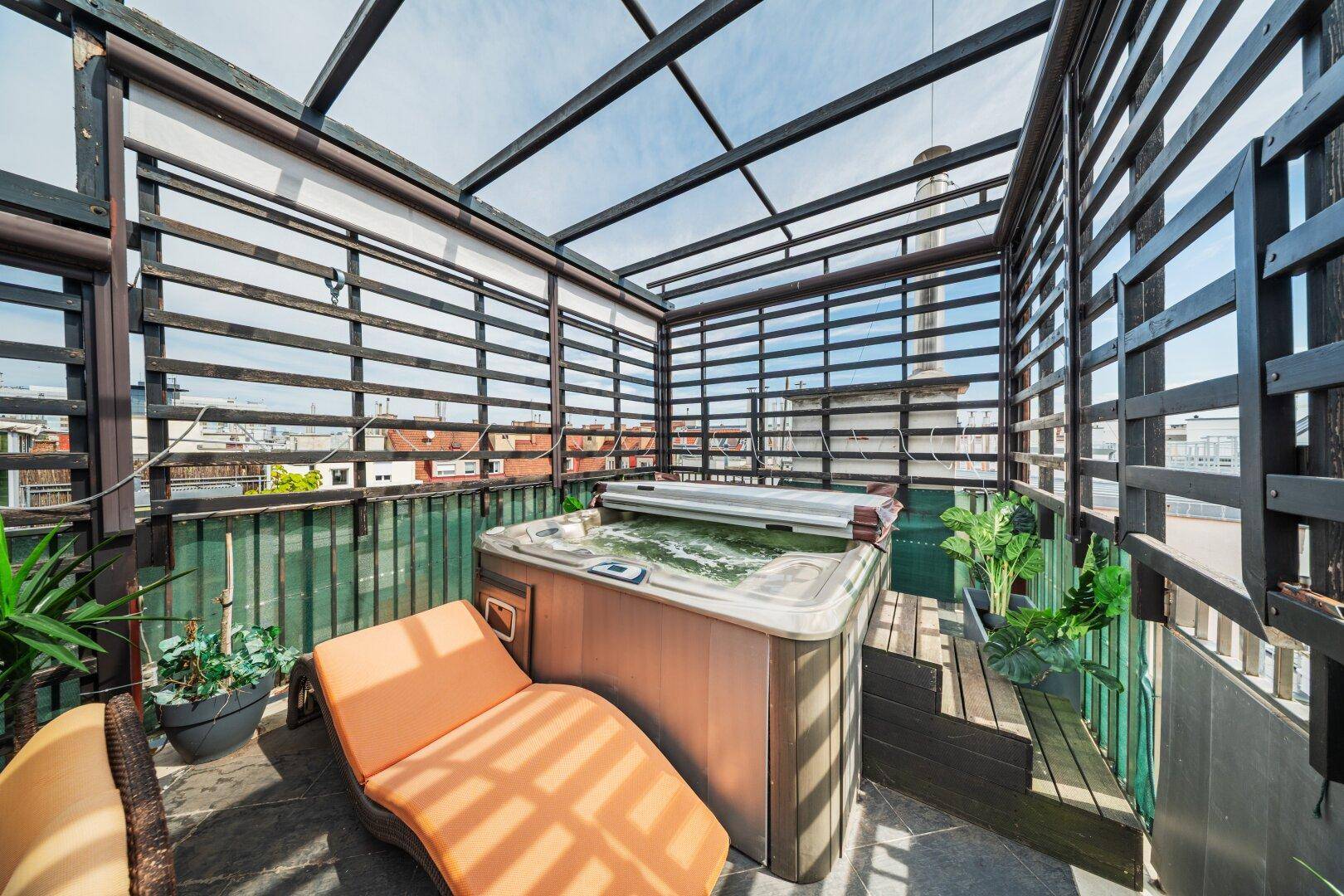 LUXURIÖSES WOHNEN ÜBER DEN DÄCHERN WIENS – MODERNE DG-WOHNUNG AUF 2 EBENEN MIT WHIRLPOOL + SAUNA + STELLPLATZ