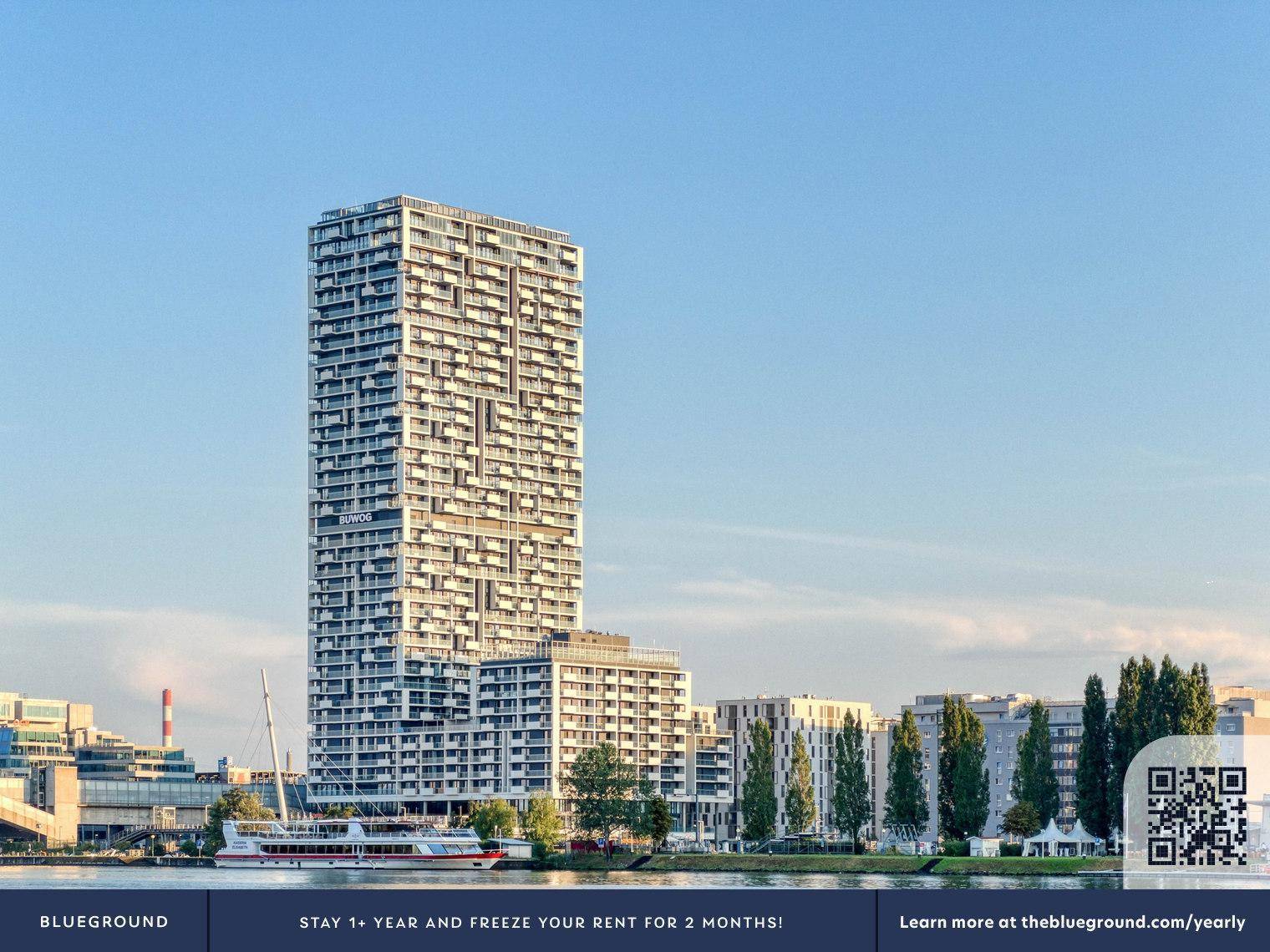2 Zi Wohnung mit tollem Ausblick auf Prater/Donauinsel im 20. Stock mit Balkon mitten im grünen (VIE314)