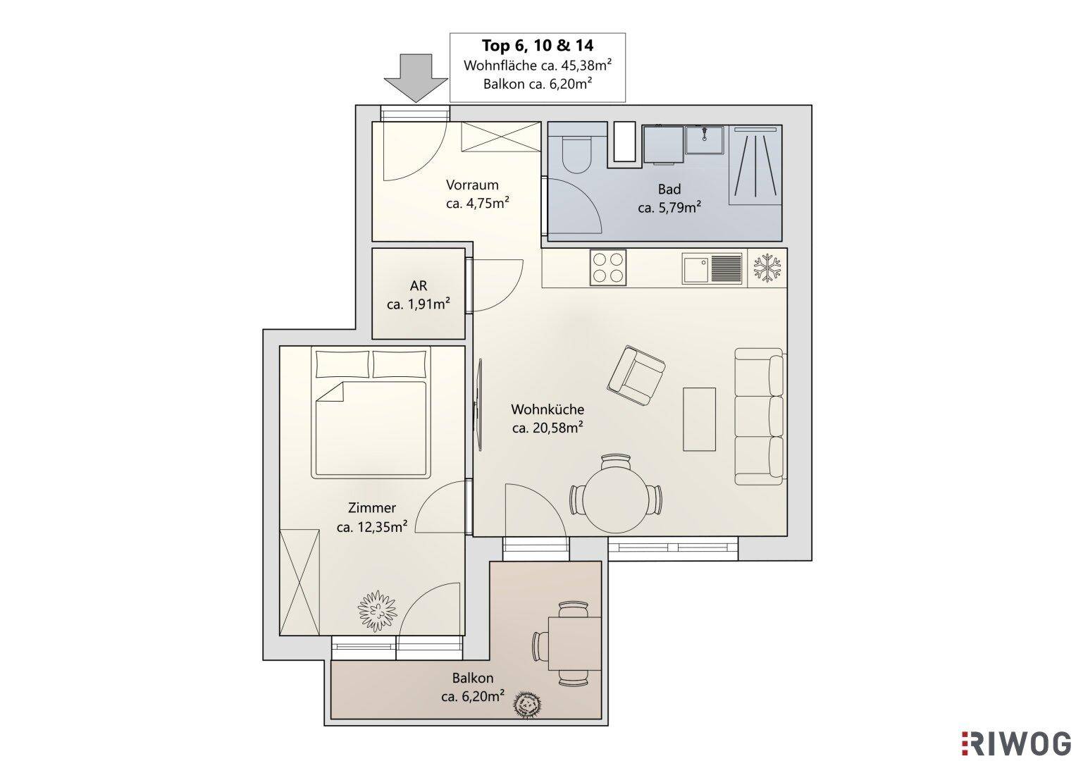 Heller Erstbezug | Hofseitige 2-Zimmerwohnung mit Balkon | Luftwärmepumpe | nähe Liesing & Riverside | Fertigstellung 1Q2026