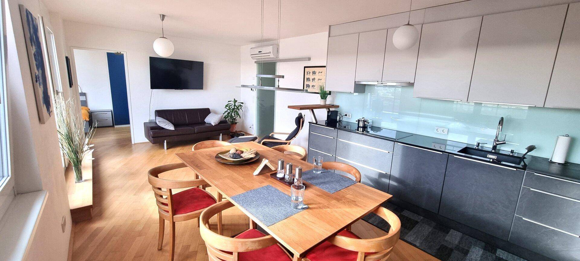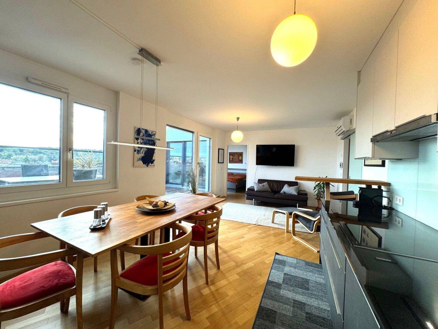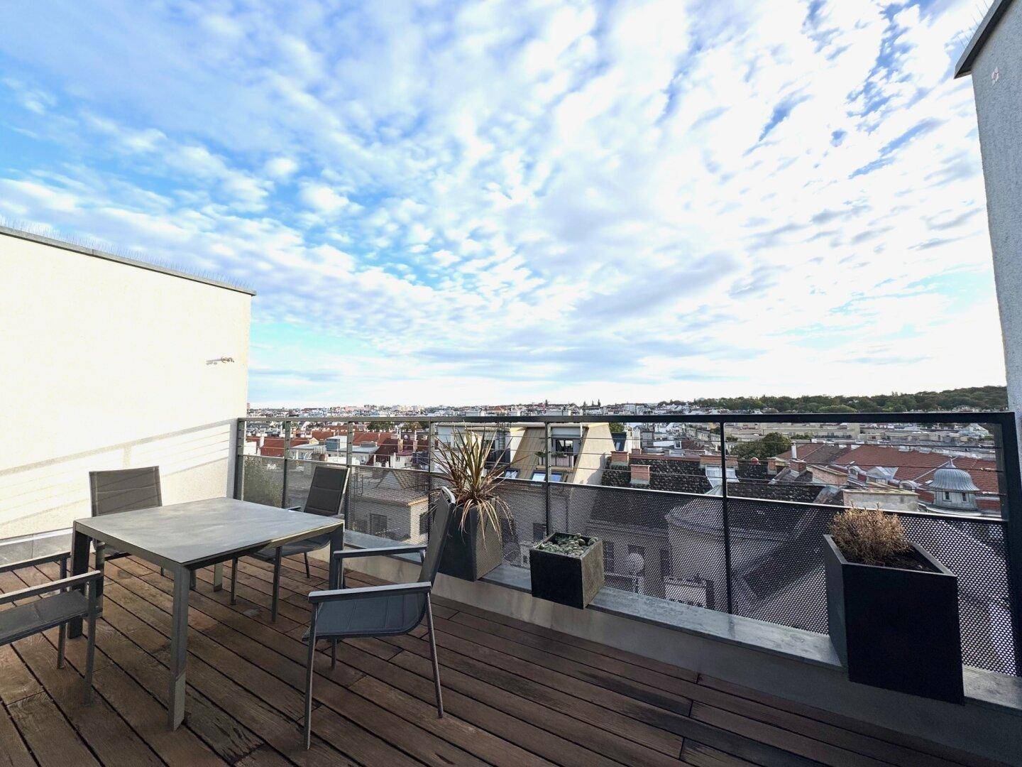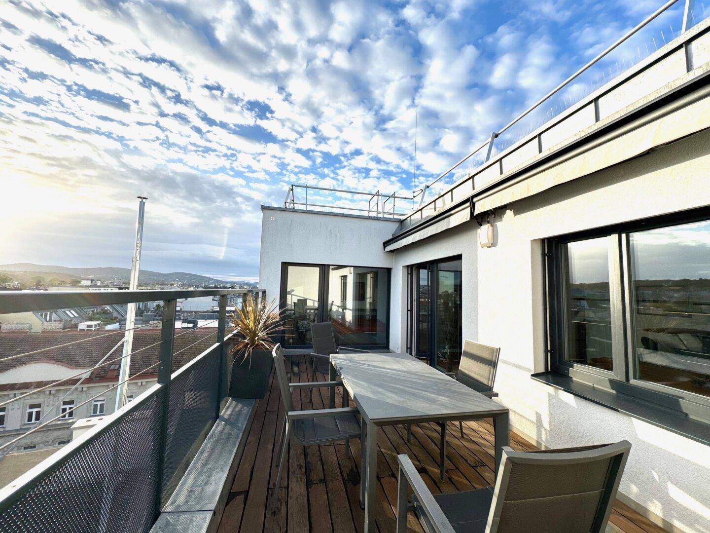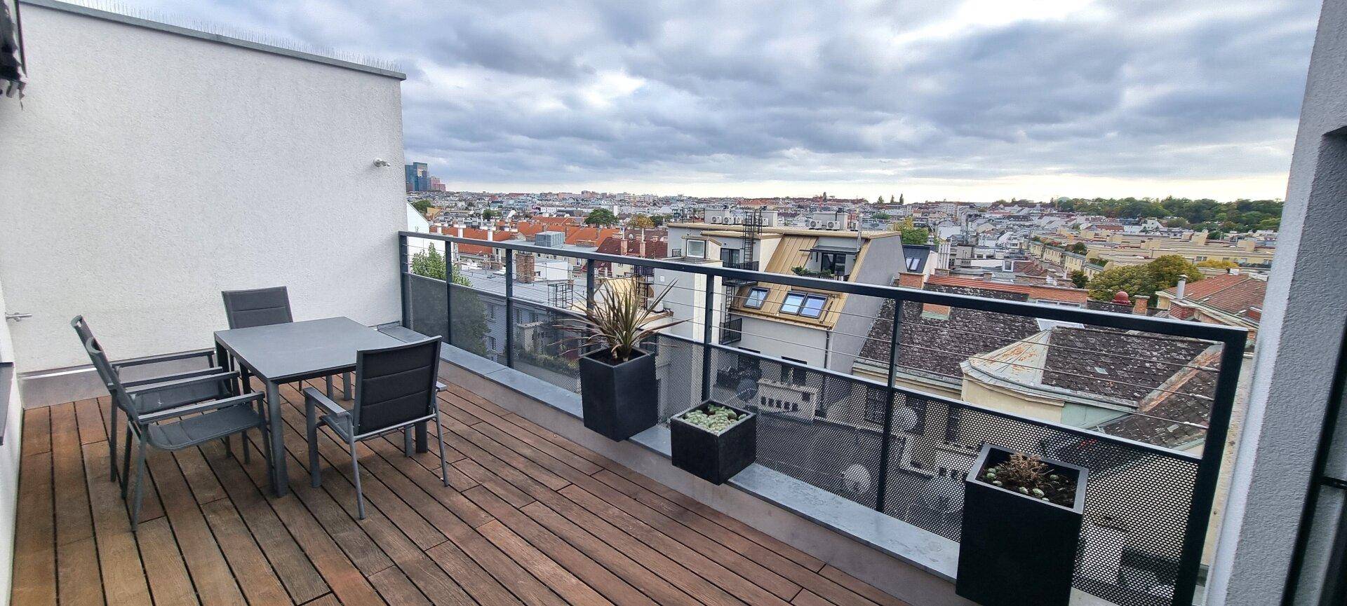 4-Zimmer High-End Living – Dachterrassentraum in Top-Lage an der U4, voll möbliert und exklusiv ausgestattet mit spektakulärem Stadtblick