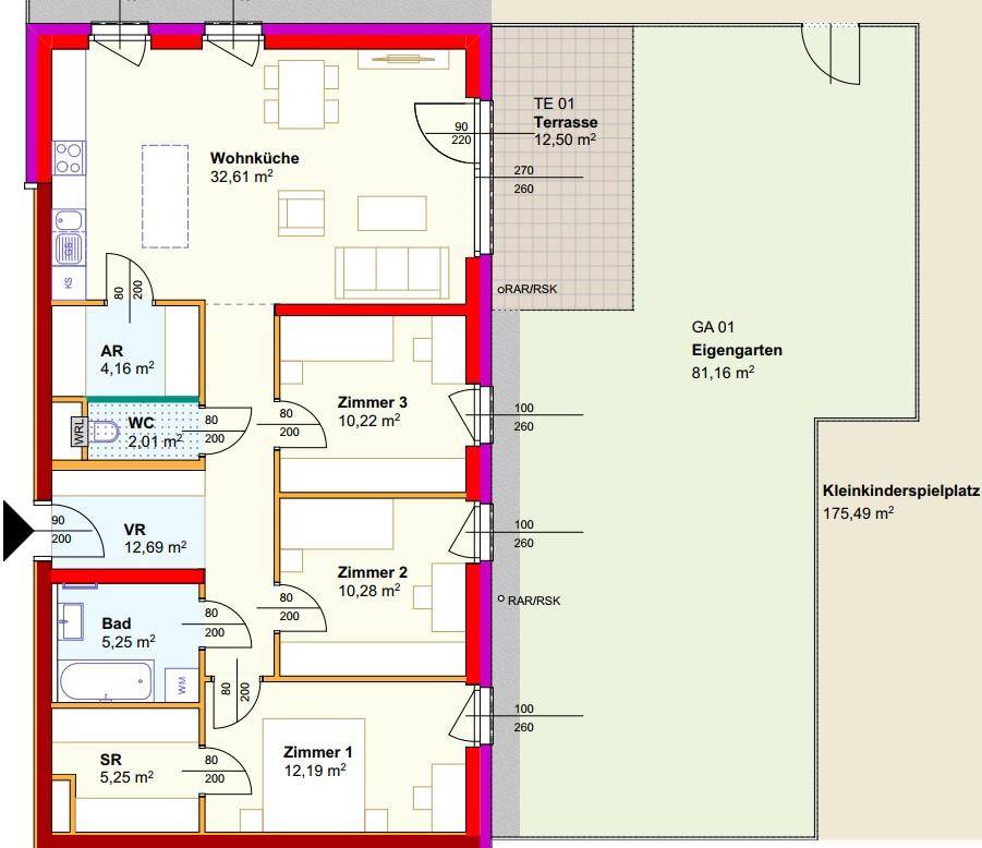 Erstbezug-Top01-4Zimmer-Eigengarten-Terrasse-GG-2PKW-Stellplätze im Freien -Miete m.Kaufoption