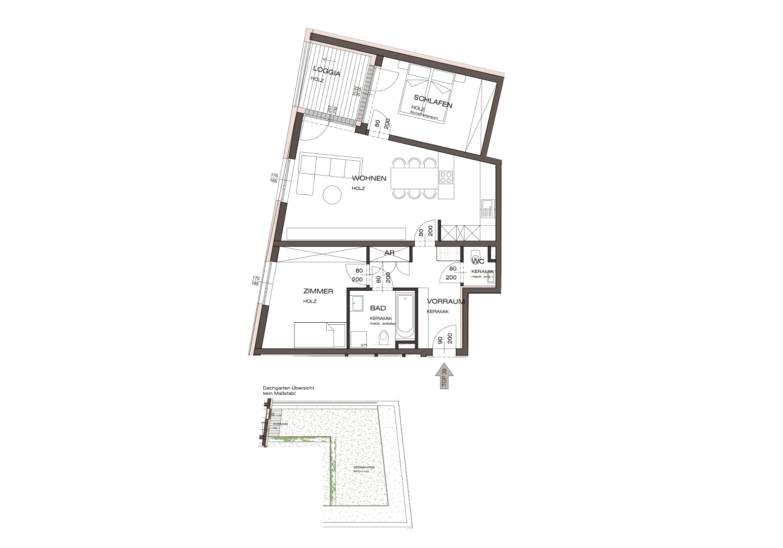 DACHGESCHOSS-Wohnung mit hofseitiger Süd-West Loggia & begrüntem Dachgarten - Fernsicht