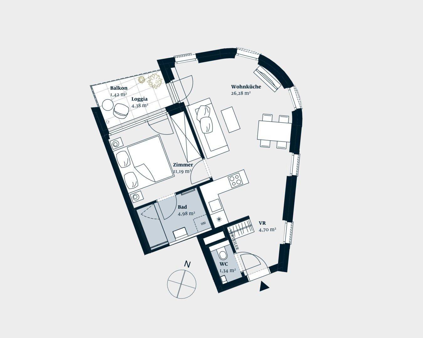 Erstbezug ab Februar! Nähe U6/U4! Helle 2-Zimmer-Wohnung mit Loggia zu vermieten!