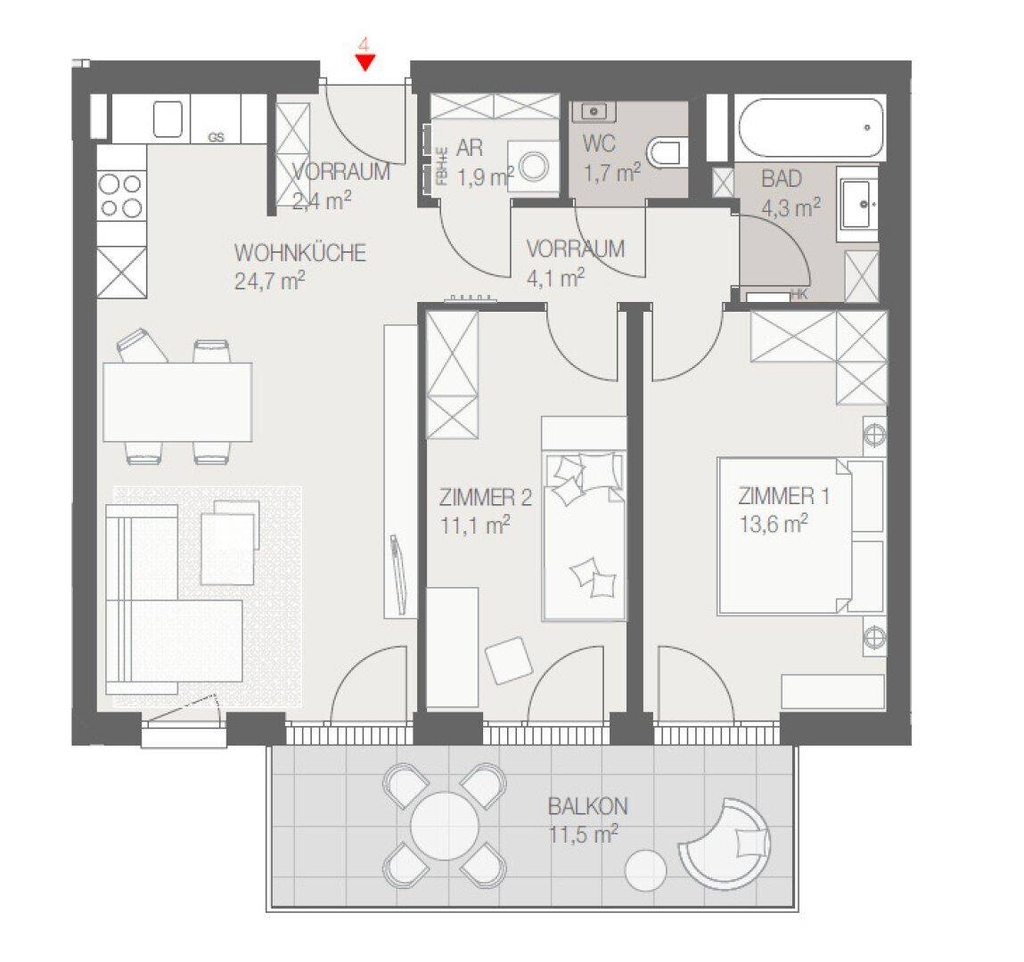 JF2 - Ideal aufgeteilte 3-Zimmer-Wohnung mit großem Balkon - TOP 4