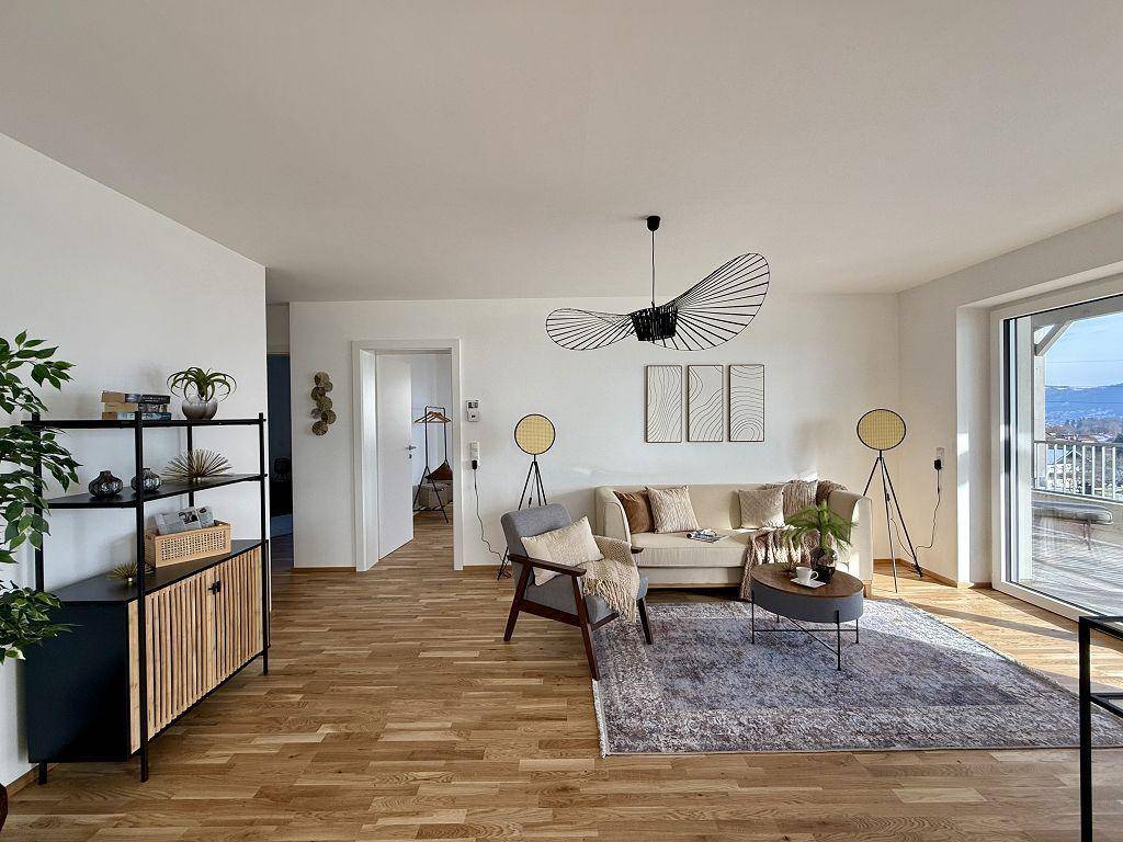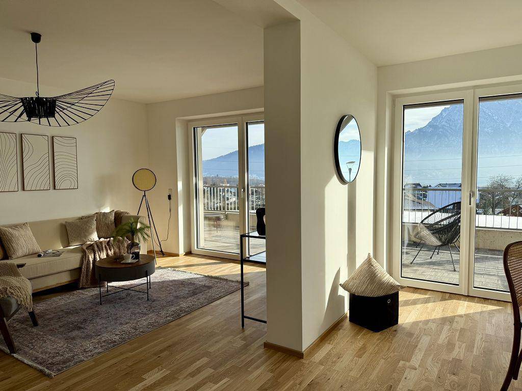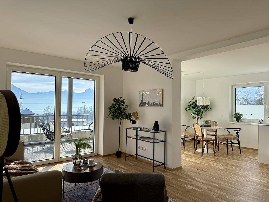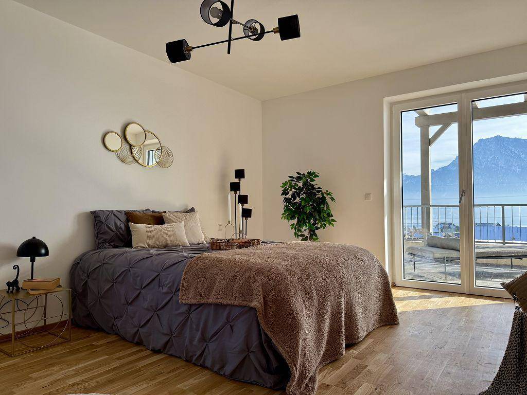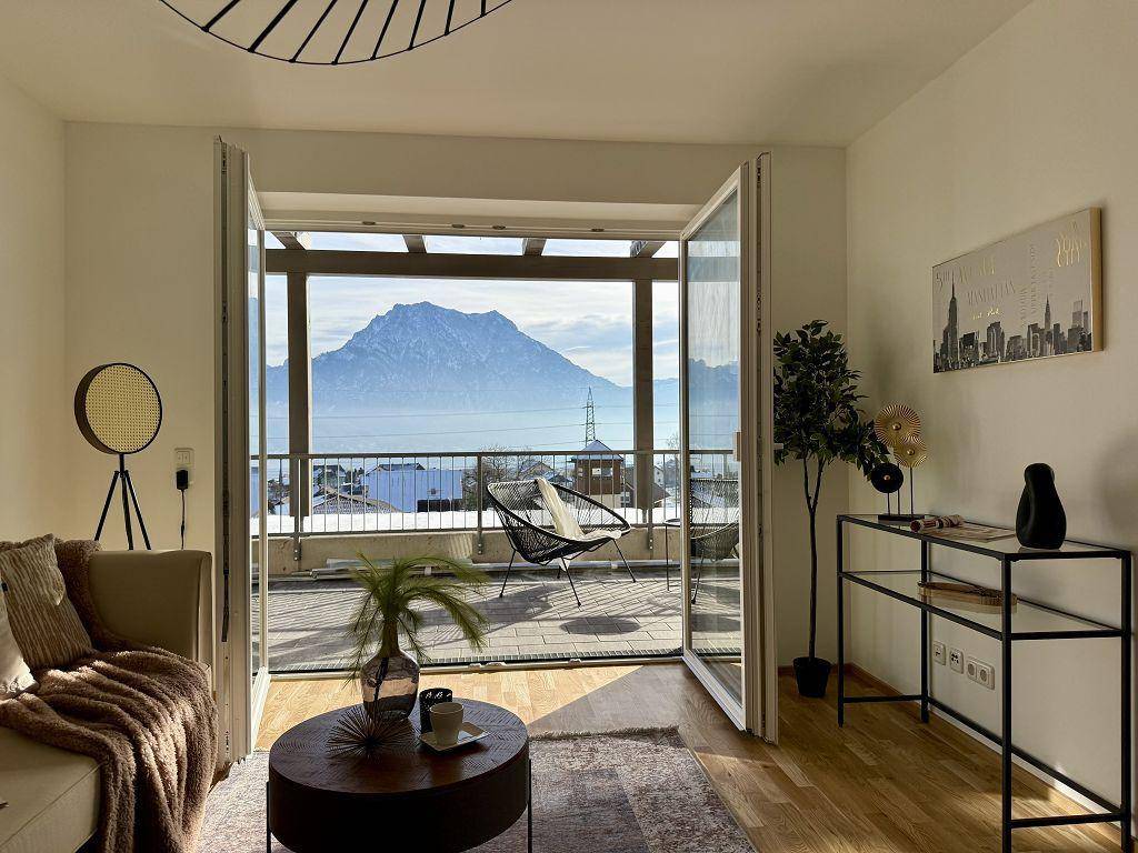 3-Zimmer-Wohnung mit Terrasse und grandiosem Blick über den See und zum Traunstein! UNMÖBLIERT, ERSTBEZUG & PROVISIONSFREI!