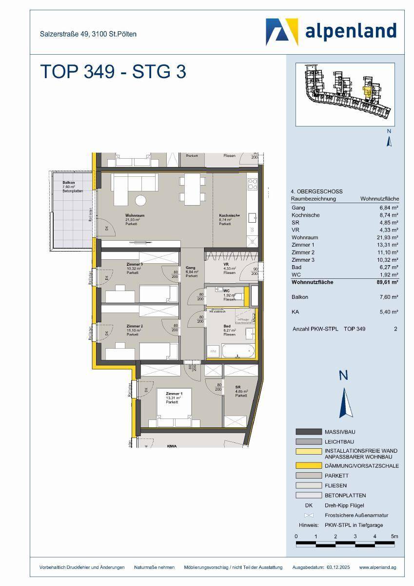 ST. PÖLTEN XXIV/1, freifinanzierte Mietwohnung mit Kaufoption, TOP 349, 1000/00011721/00001349