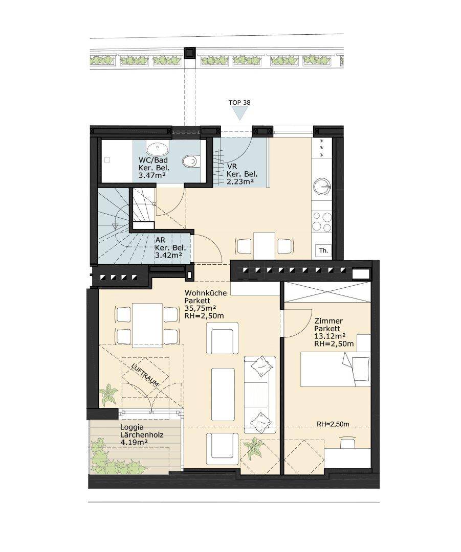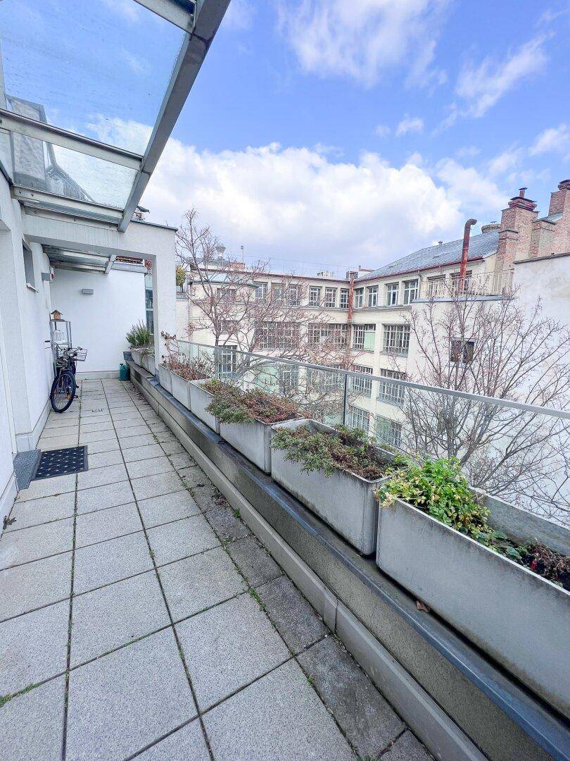 87 m2 Dachgeschoss Maisonette mit 8,74 m2 Terrasse, 4,19 m2 Loggia und Garagenplatz! Nähe Westbahnhof / Burggasse Stadthalle U6
