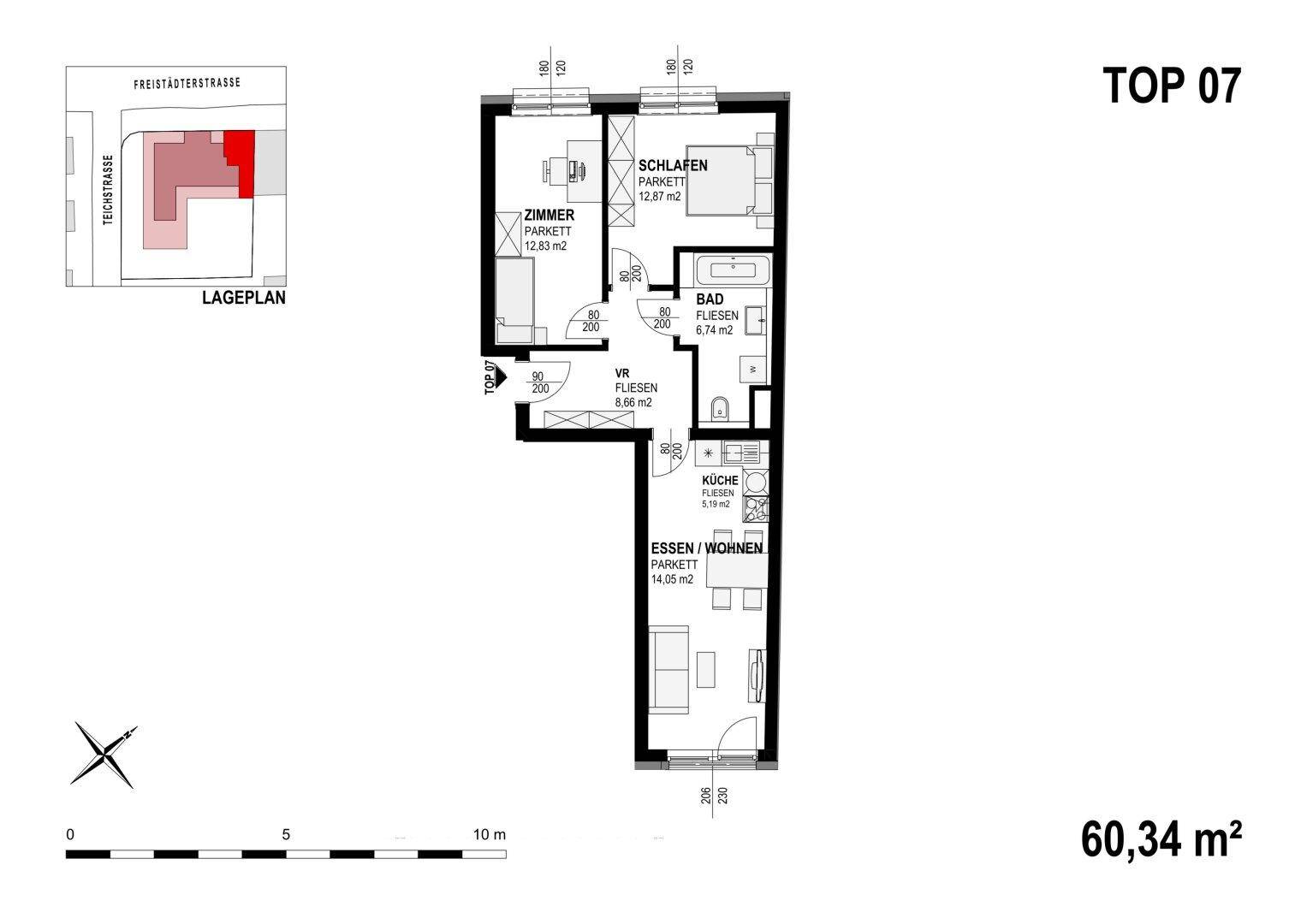 MODERNE 3-ZIMMER- WOHNUNG NÄHE JKU - WG GEEIGNET