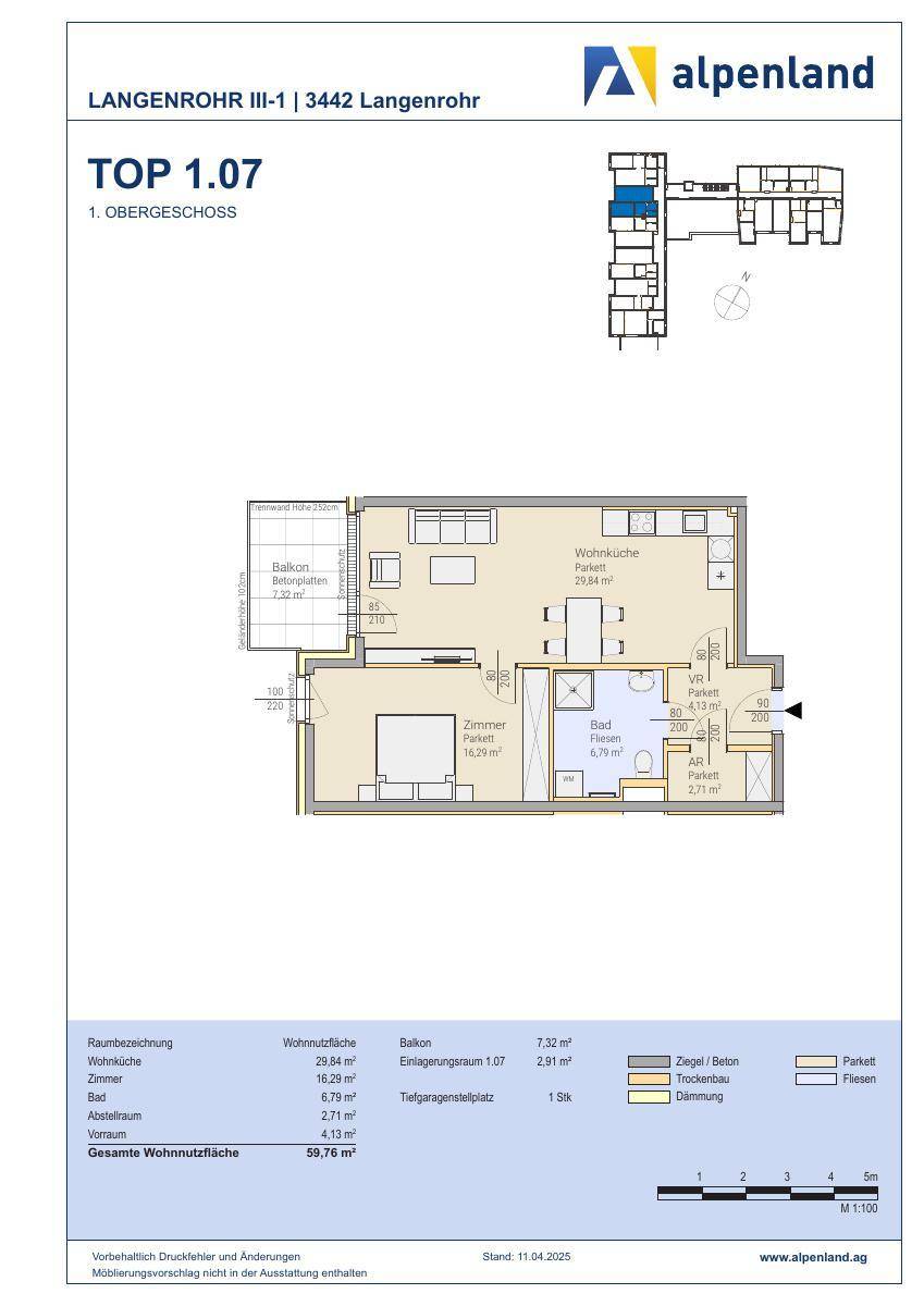 LANGENROHR III/1, "Betreutes Wohnen (BV)" - geförderte Mietwohnung, 1. OG Top 1.07, 1000/00011991/00001107