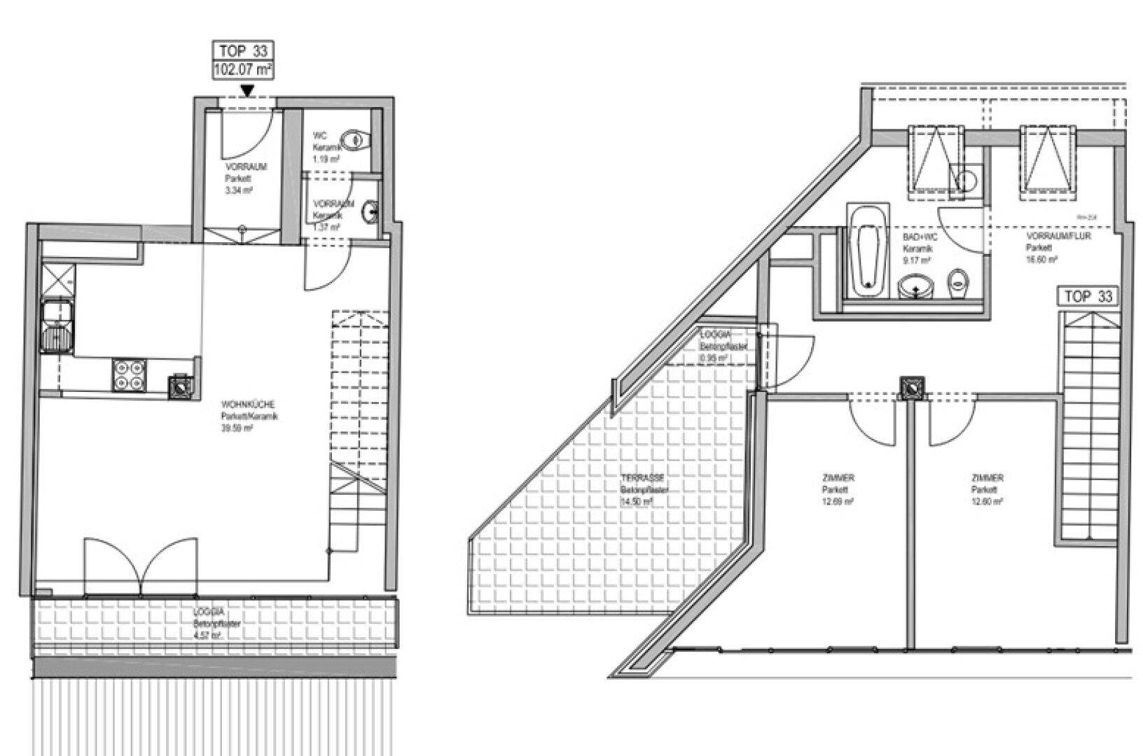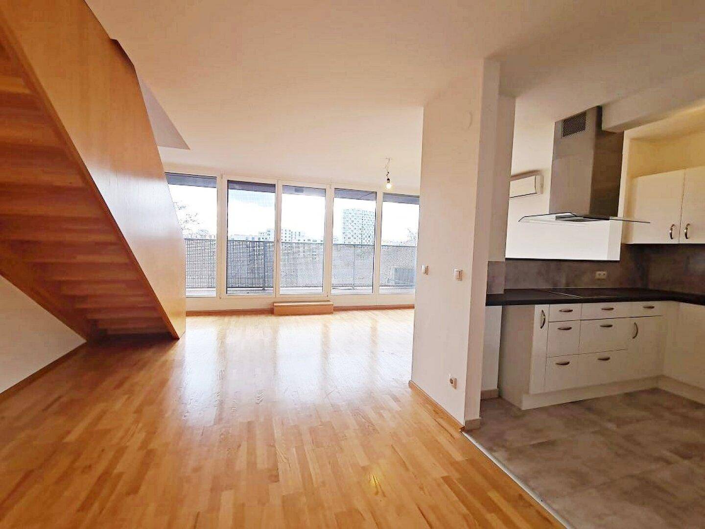 FERNBLICK, DACHGESCHOSS, 102 m2 Maisonette, 3 Zimmer, Komplettküche, Wannenbad, Parketten, Innstraße