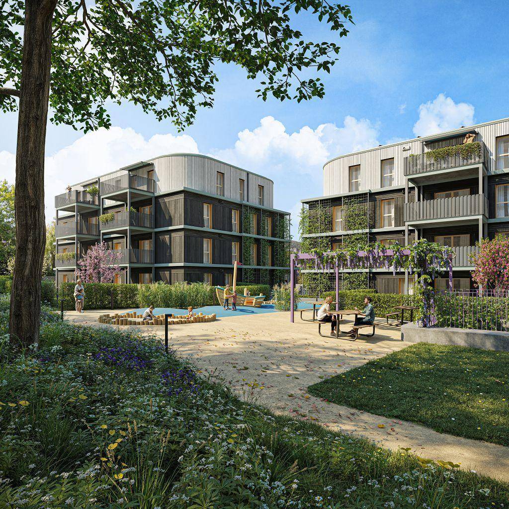 GRÜNE STADTVILLEN - 3 Zimmer mit Balkon und Sichtholz | Holzbauweise - Ruhig - Grün | Provisionsfrei!
