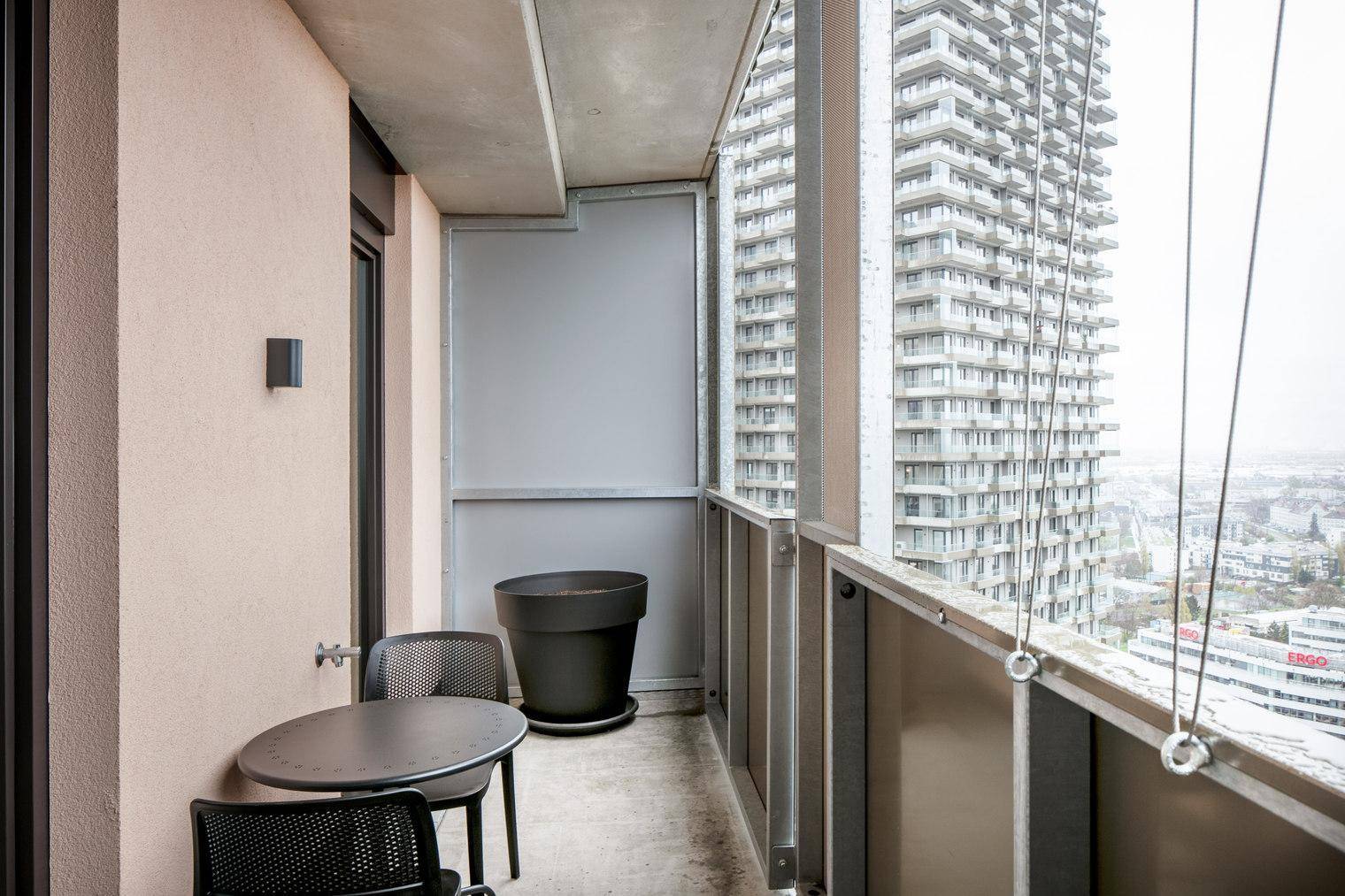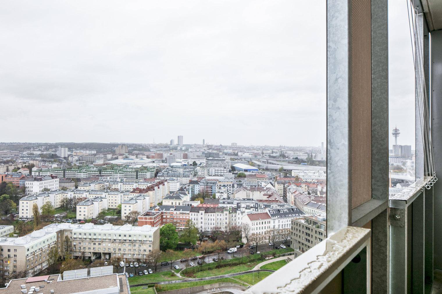 Traumblick über Wien, 27. Stock Q-Tower mit Gym, Interspar & Lounges, 2 Zimmer + Balkon, U-Bahn (VIE280)