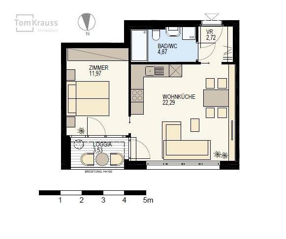 RUHIGES WOHNEN MIT AUSGELEICHENEM LICHT – LOGGIAWOHNUNG
