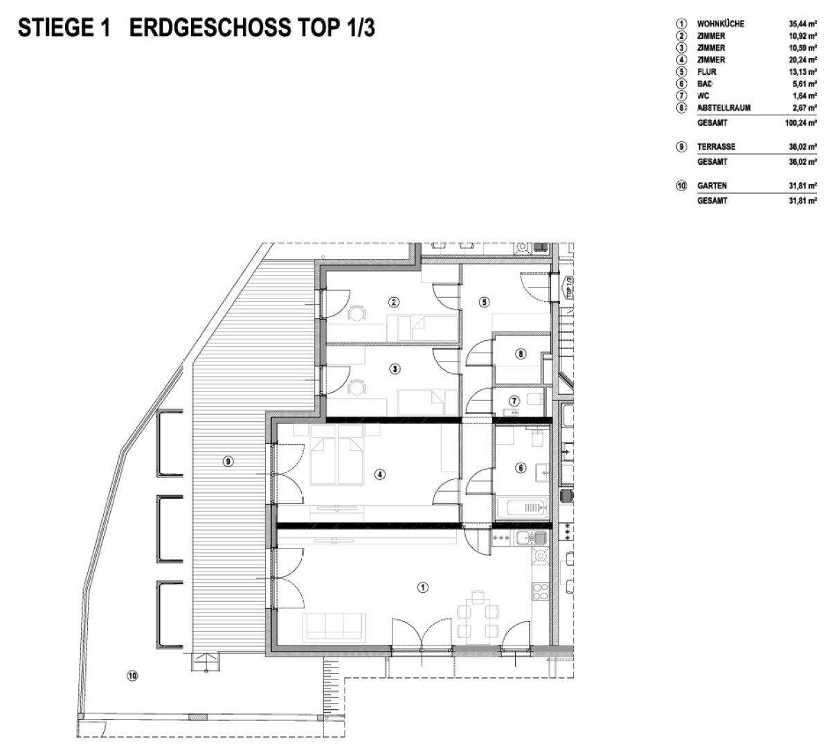 Gartenwohnung mit 4 Zimmer, großer Terrasse und Gartenanteil, Erstbezug!
