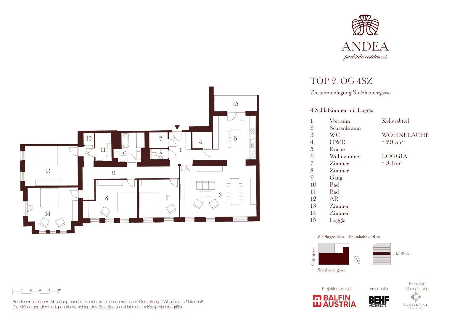 Stilvolle 5-Zimmer-Wohnung im klassischen Wiener Stil mit Loggia - ANDEA Parkside Residences