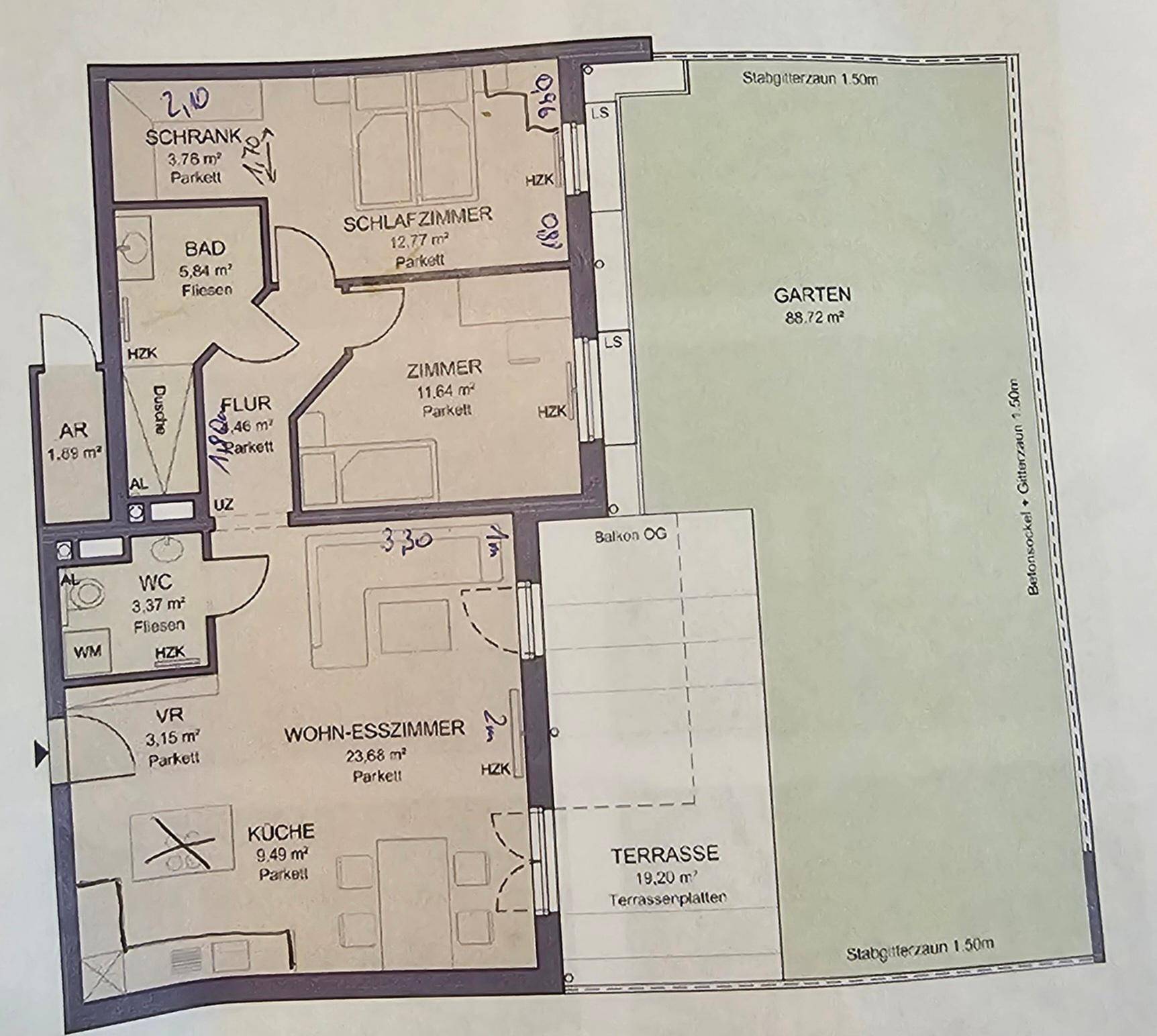3 Zimmer Gartenwohnung inkl Heizung und Warmwasser und Parkplatz