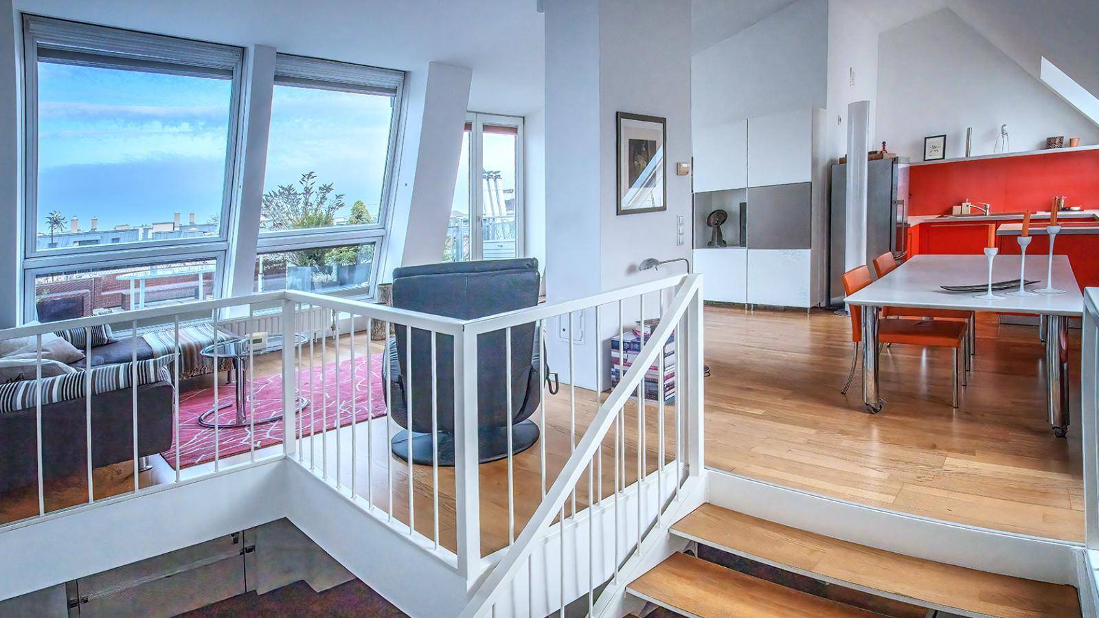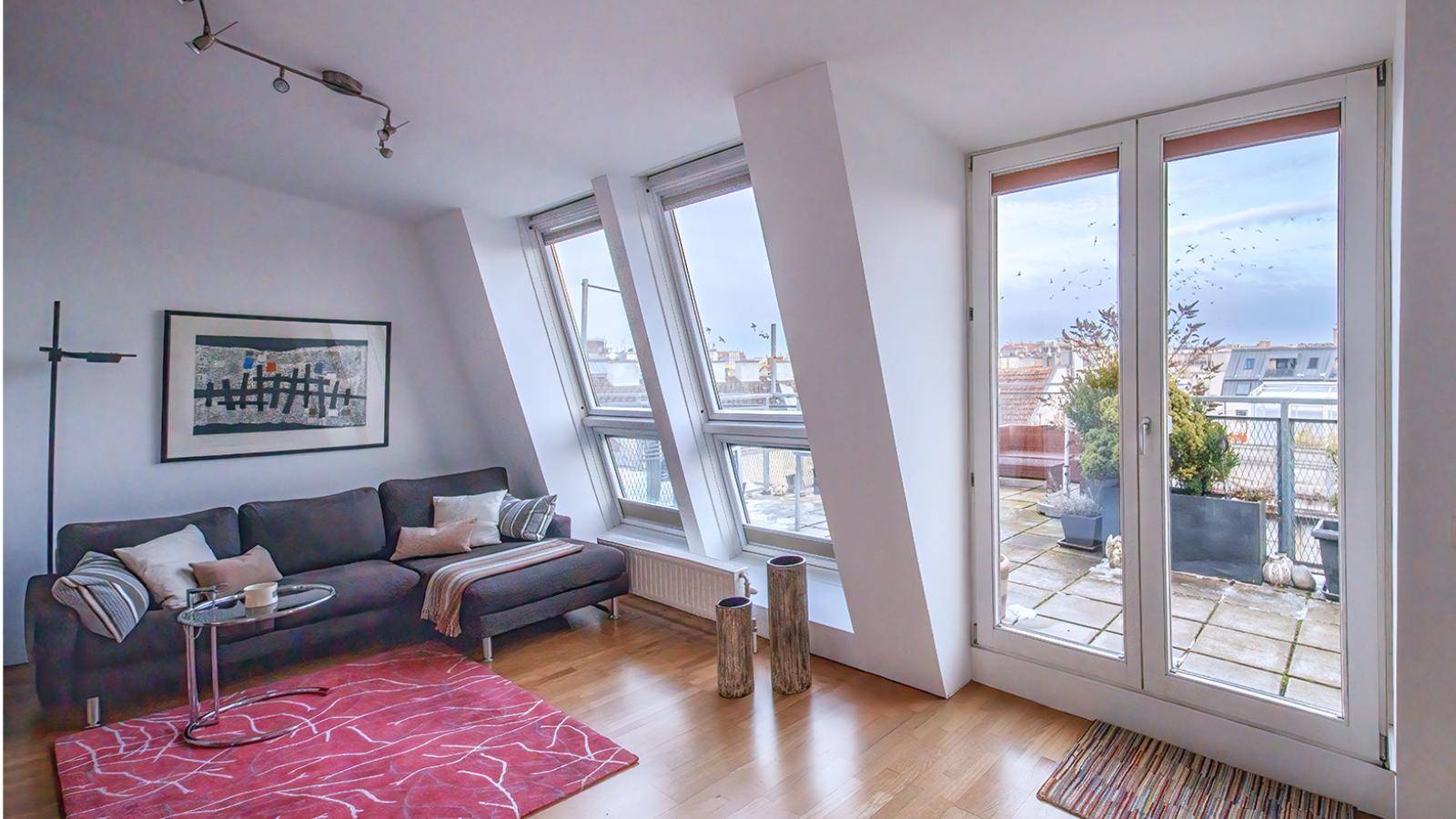 28 m2 TERRASSE auf WOHNEBENE: Architekten-Maisonette mit Fernblick