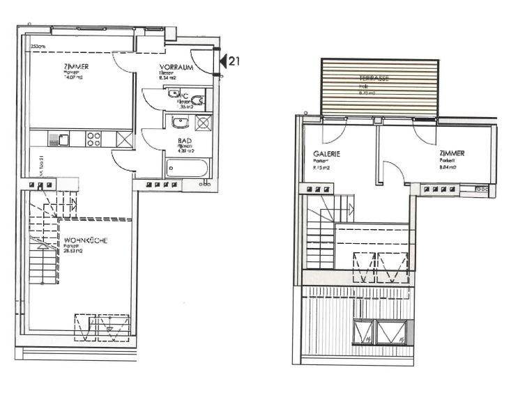 3-Zimmer-Maisonette im Dachgeschoss mit Galerie und Terrasse - Nähe U4 Meidling