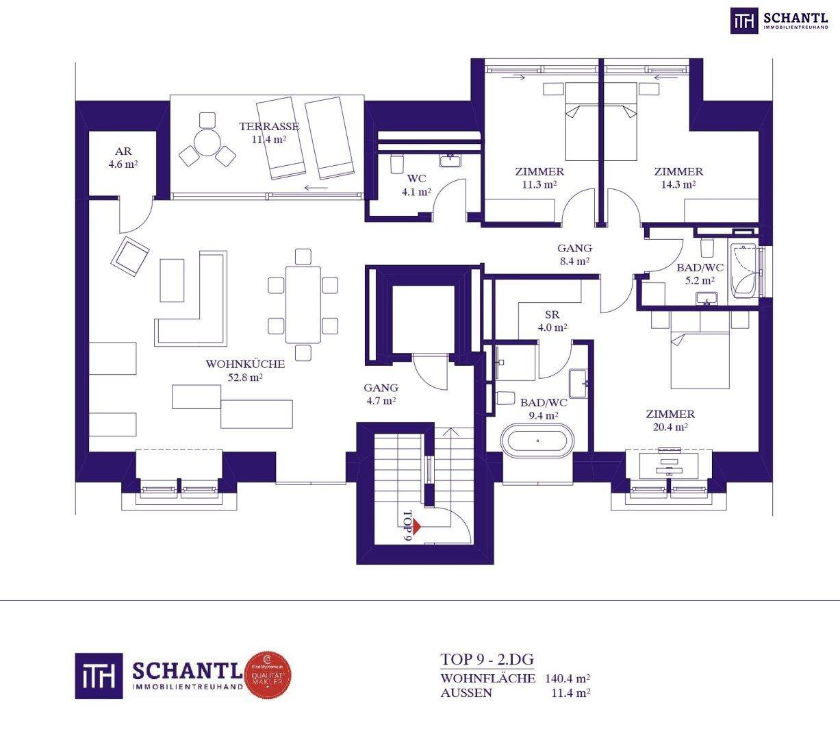 Penthouse-Exklusivität: 4-Zimmer-Refugium I allein auf einer Ebene I direkter Liftzugang I traumhaftes Panorama I Privatsphäre pur!