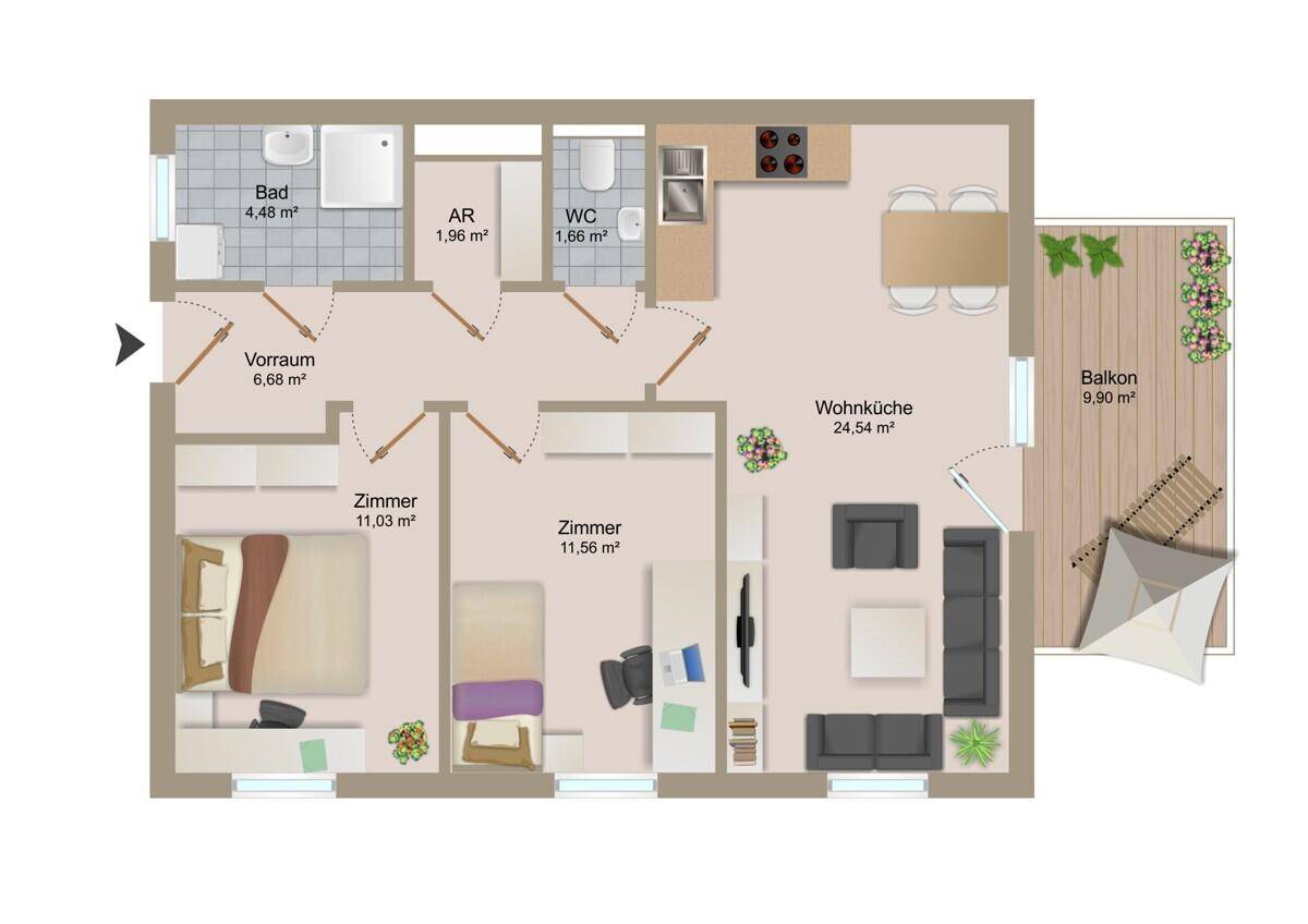 Sonnige 3-Zimmer-Wohnung mit Bergblick