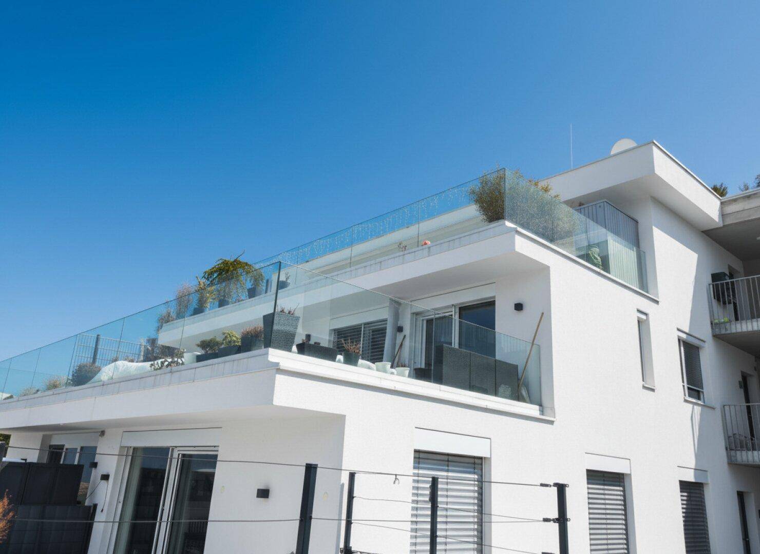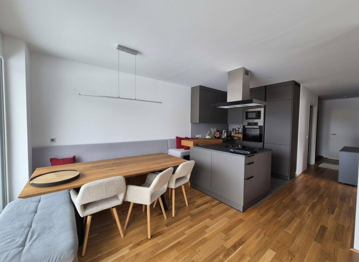 Neuwertige moderne 3 Zimmer-Wohnung mit großer Aussichtsterasse und Tiefgaragenabstellplatz mit Wallbox.
