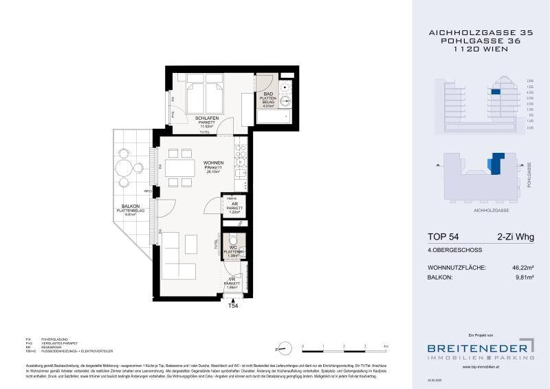 2-Zimmer Anlegerwohnung im 4. OG mit großem Balkon | Neubau AICH35 in 1120 Wien