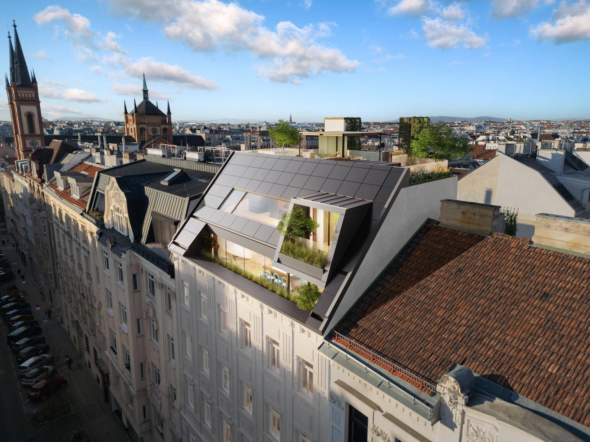 Luxus-Dachausbau mit Dachgarten im Herzen des 8. Bezirks – Wohnen auf höchstem Niveau