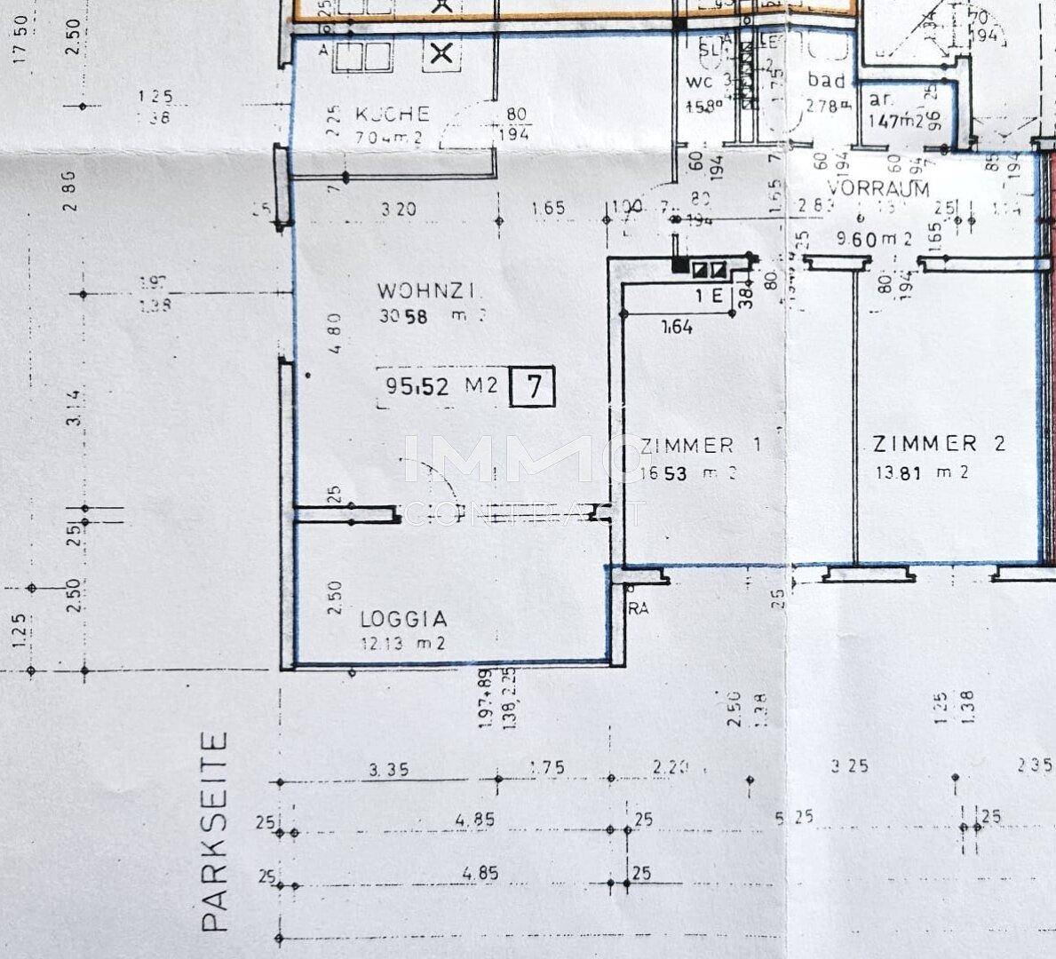 Große 3-Zimmer-Wohnung mit Loggia im Zentrum mit Parkblick