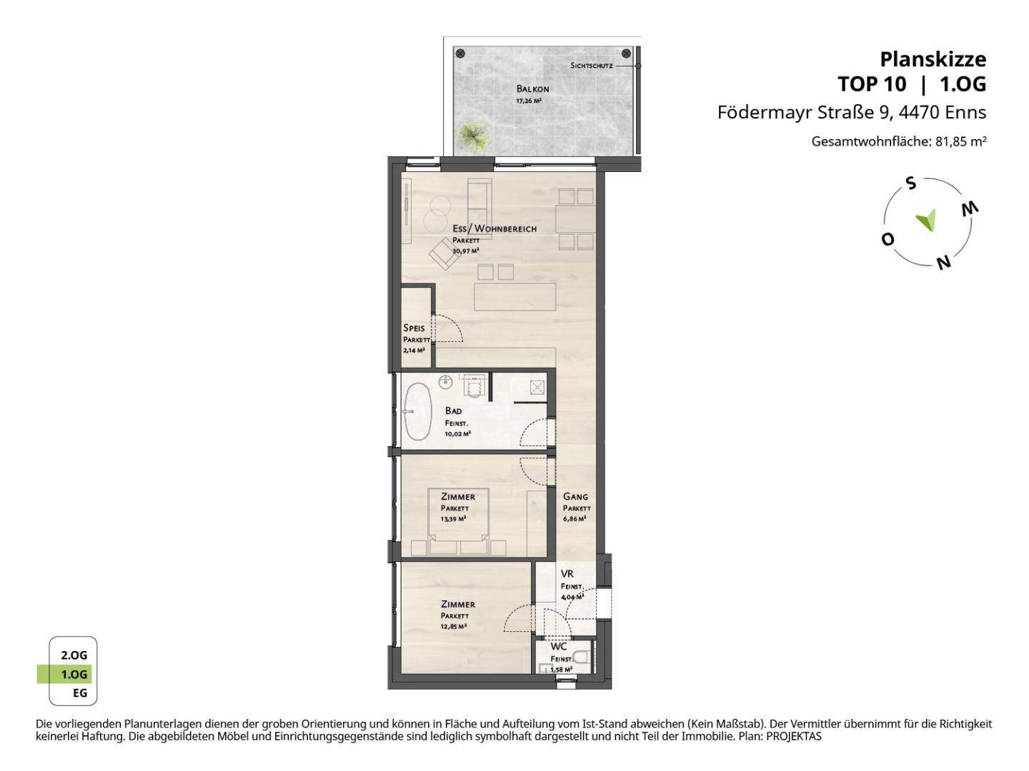 ERSTBEZUG in ENNS: Hochwertige 3 Zimmerwohnung mit großem Balkon - TG möglich!