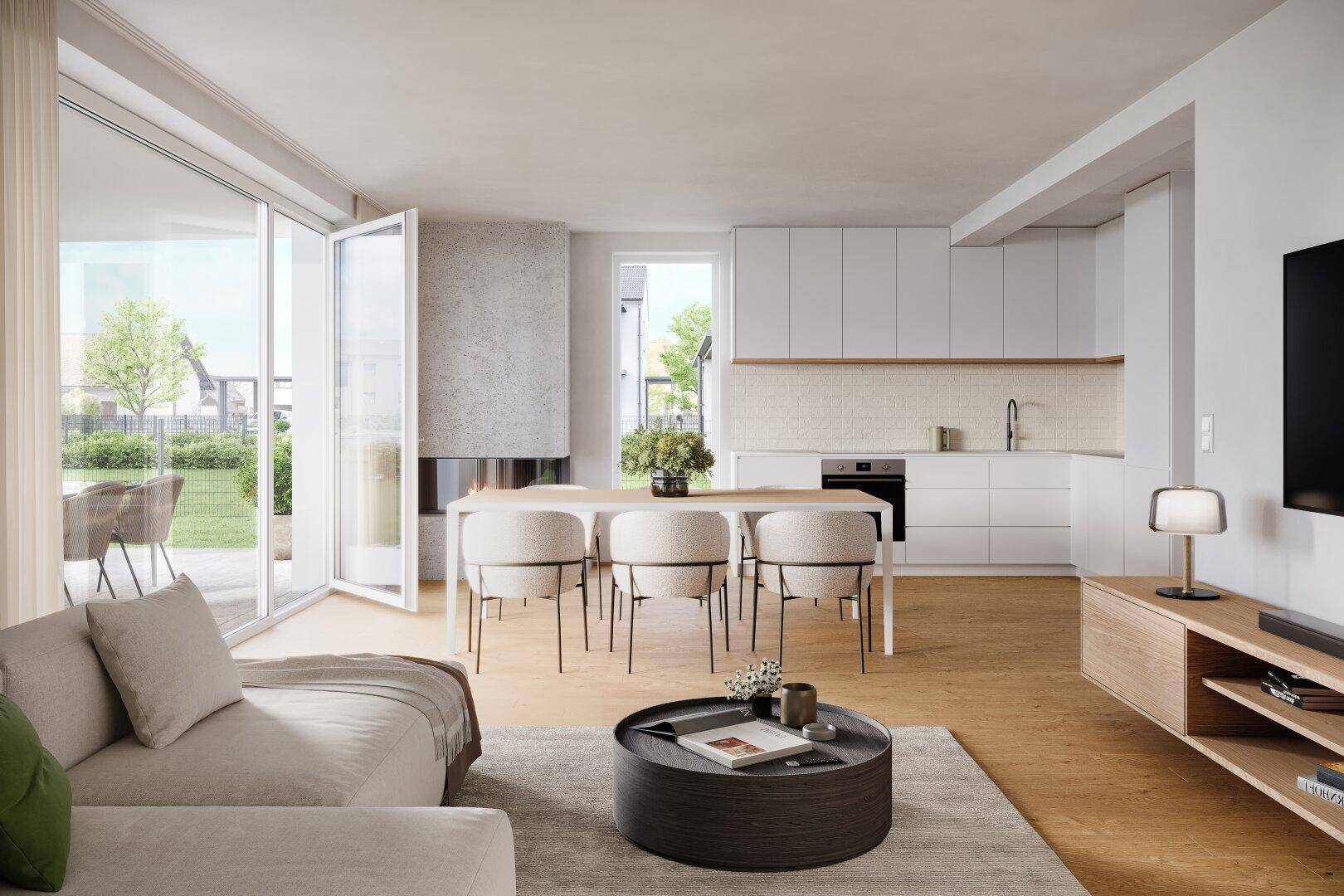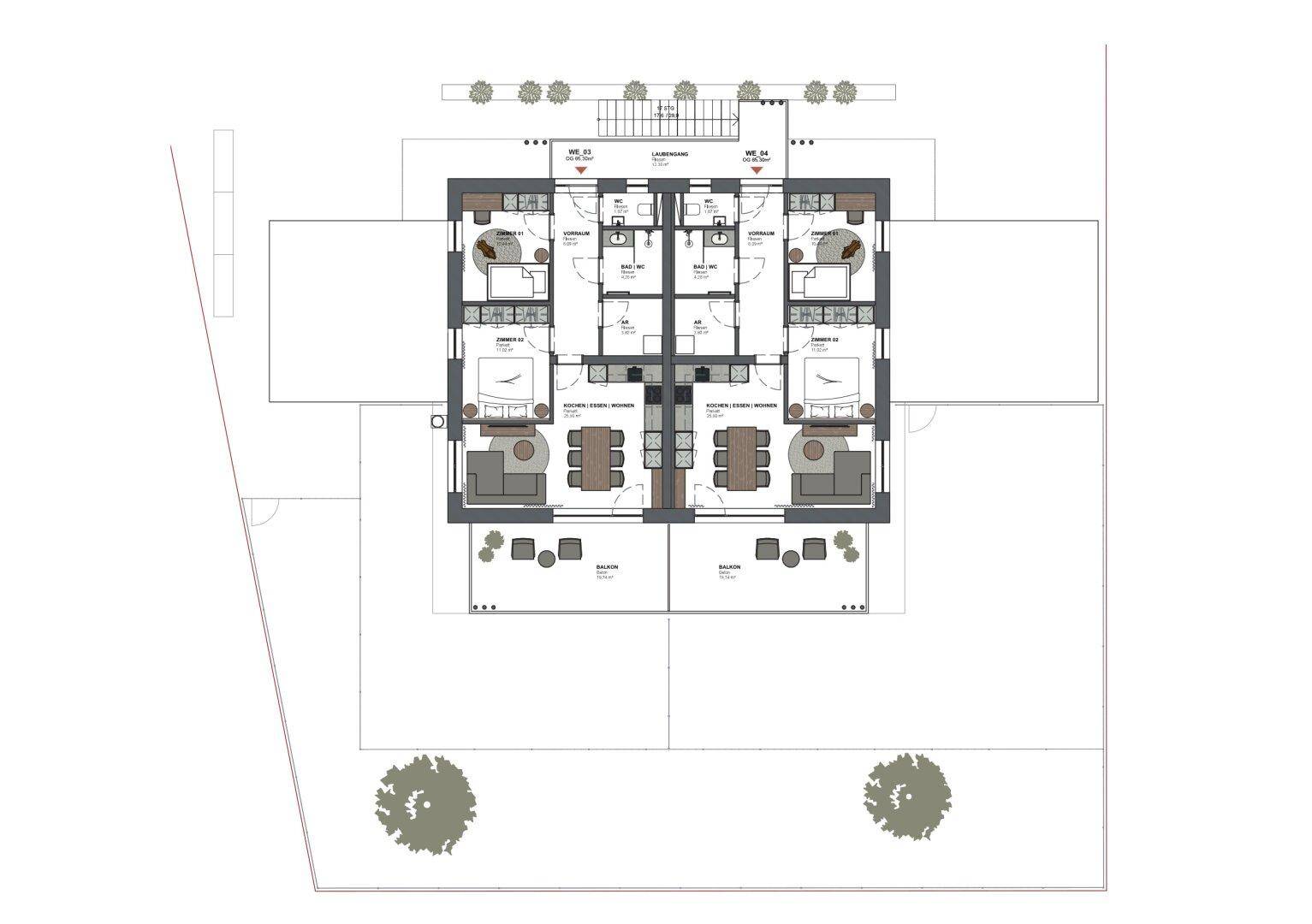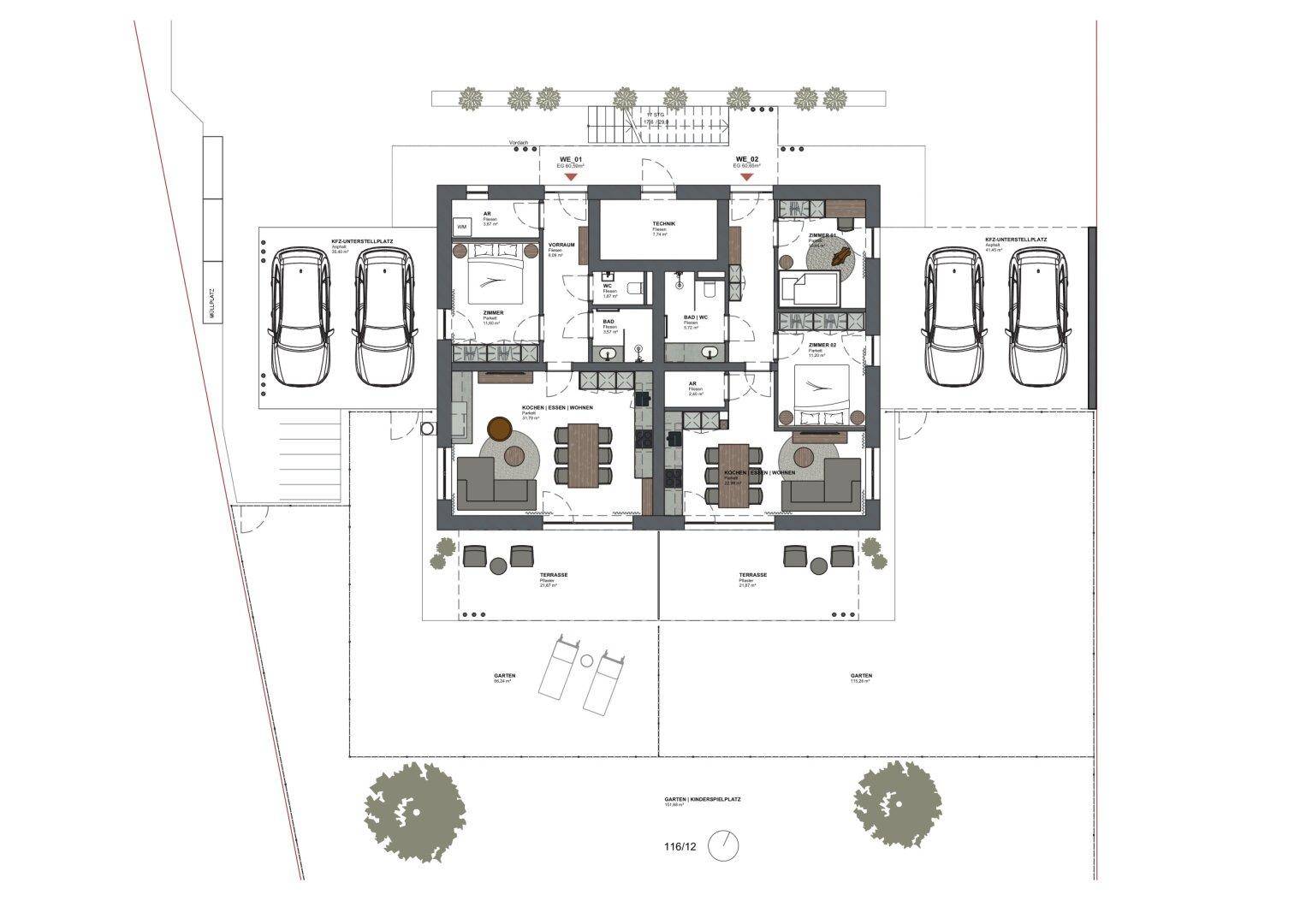 Vier Neubauwohnungen in sehr guter Lage- zwei im EG mit Terrassen und Eigengarten- zwei im OG mit Balkon- vier eigene Carports